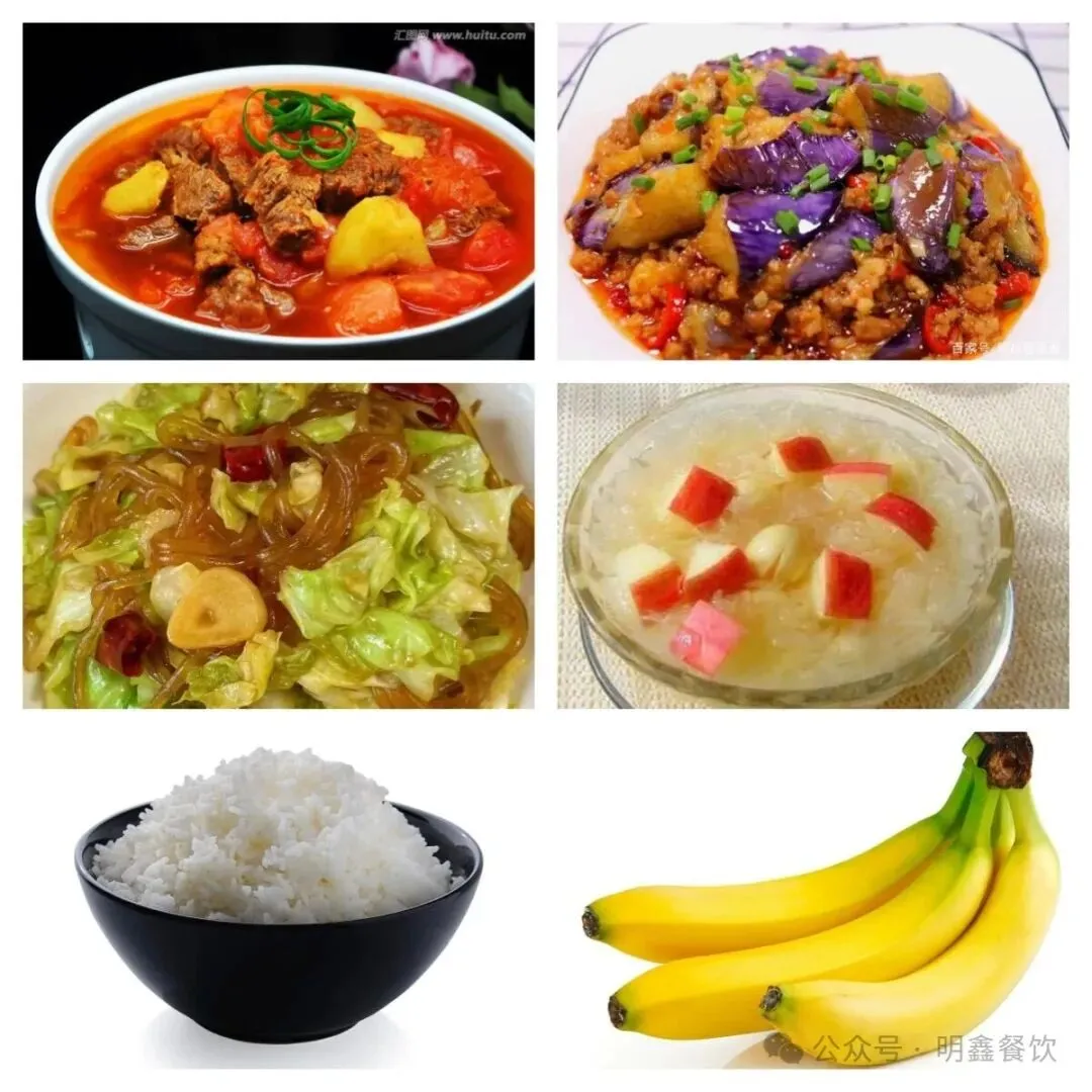 清真:西红柿炖牛肉、牛肉鱼香茄子、包菜炒粉条