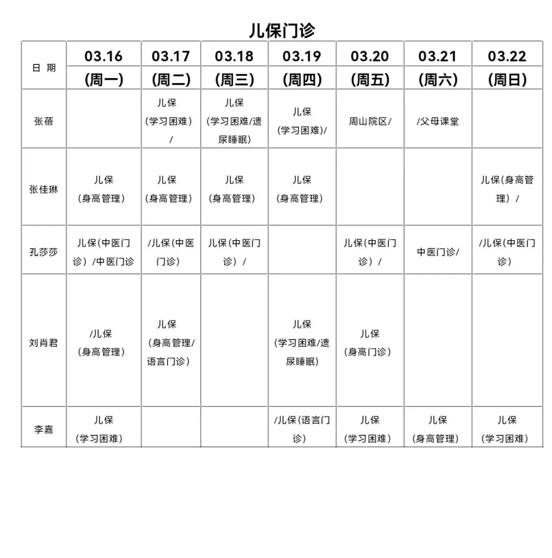 排班 儿保门诊地址:南门诊楼1楼(医院门诊楼对面,中州中路南侧)