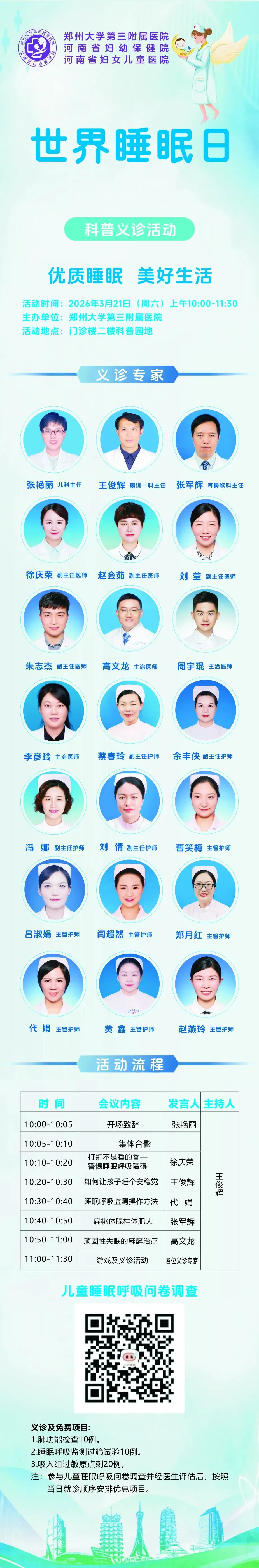 >郑州大学第三附属医院将于2026年3月21日举办“世界睡眠日”科普义诊活动--优质睡眠 美好生活