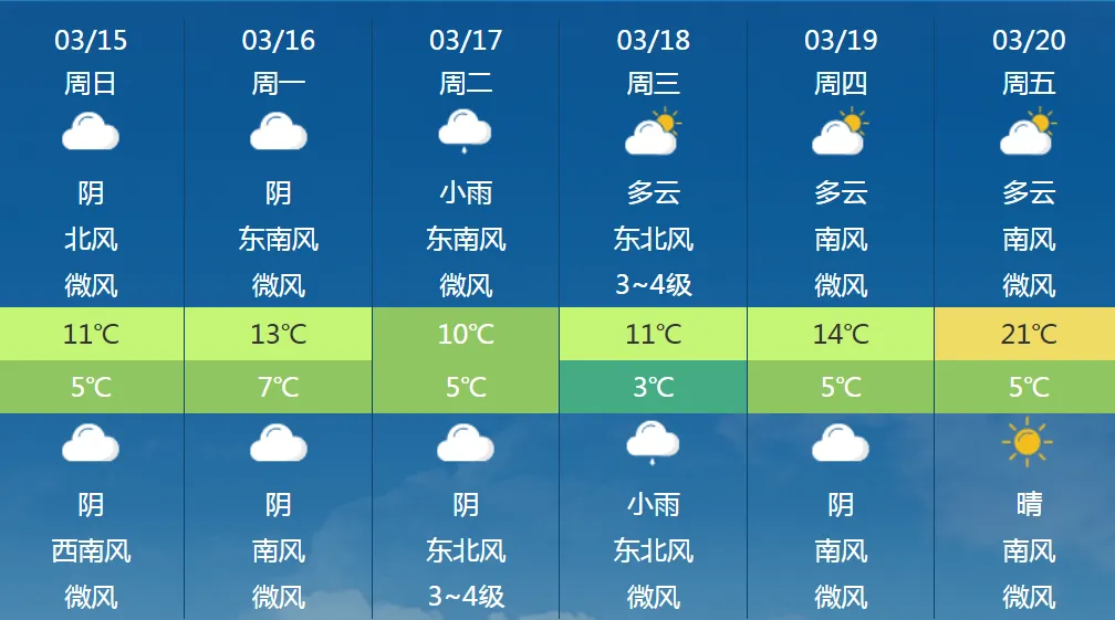 郑州市天气预报,今天:阴天,东北风:2-3级,最低气温:4~5℃,最高气温:9~10℃。16日:阴天,5~12℃。