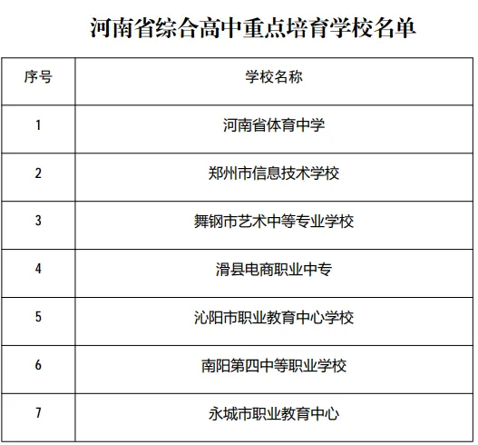 河南省综合高中重点培育学校