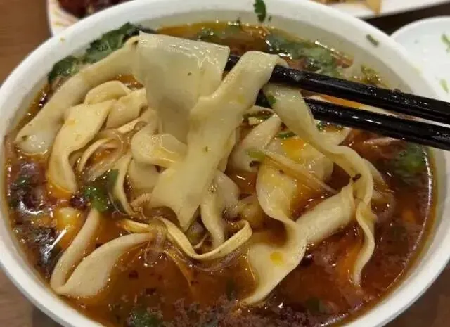 正宗的郑州烩面,精髓全在“汤”与“面”。汤底是灵魂,需用新鲜羊骨加姜片、葱段、八角慢炖数小时,直至汤色乳白如牛乳,鲜而不膻;面条是筋骨,高筋面粉加盐、碱揉制,三醒三揉后手工抻成宽如牛舌的面片,筋道爽滑,久煮不烂。碗中码入羊肉片、粉条、海带丝、鹌鹑蛋,浇上滚烫浓汤,撒一把香菜与蒜苗,淋几滴辣椒油,再配一瓣糖蒜,先喝汤、后吃面,鲜香醇厚,一碗下肚,通体舒畅。