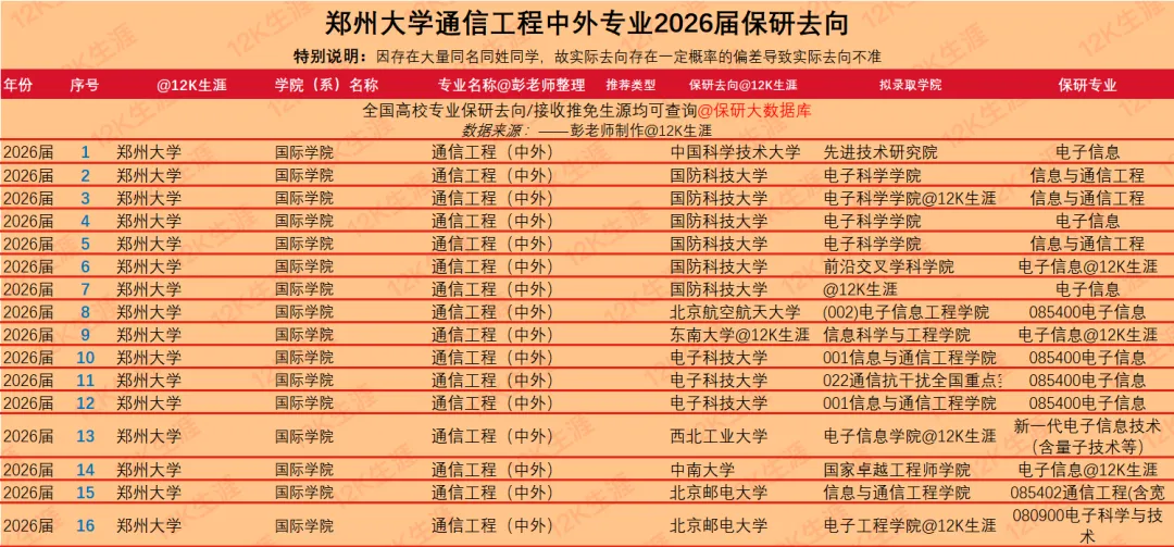 郑州大学2026届通信工程中外专业保研去向