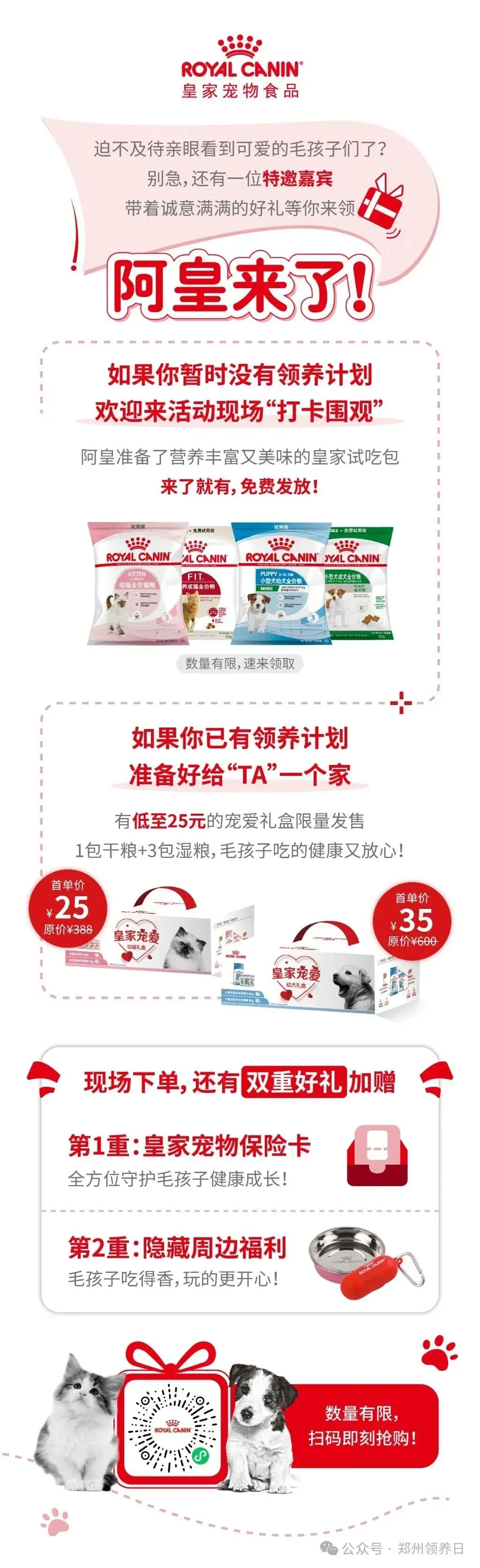 现场扫描二维码赠送2袋皇家猫粮/狗粮试用装