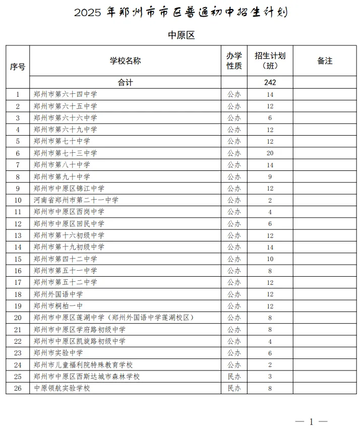 根据《河南省教育厅办公室关于印发〈河南省义务教育阳光招生专项行动实施方案〉的通知》(教办基〔2025〕108号)精神,现对市区教育部门编制的2025年普通初中招生计划予以公布。