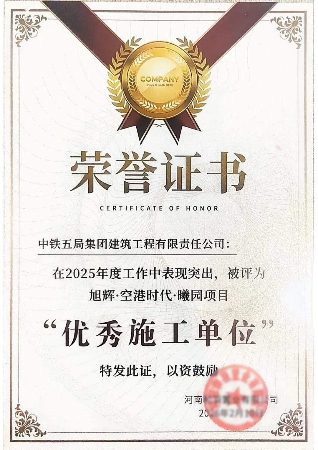 近日,建筑公司郑州空港A12地块项目凭借卓越的施工生产管理能力,获业主单位2025年度“优秀施工单位”表彰,项目负责人获评“优秀生产经理”,3名管理人员获评“先进个人”。
