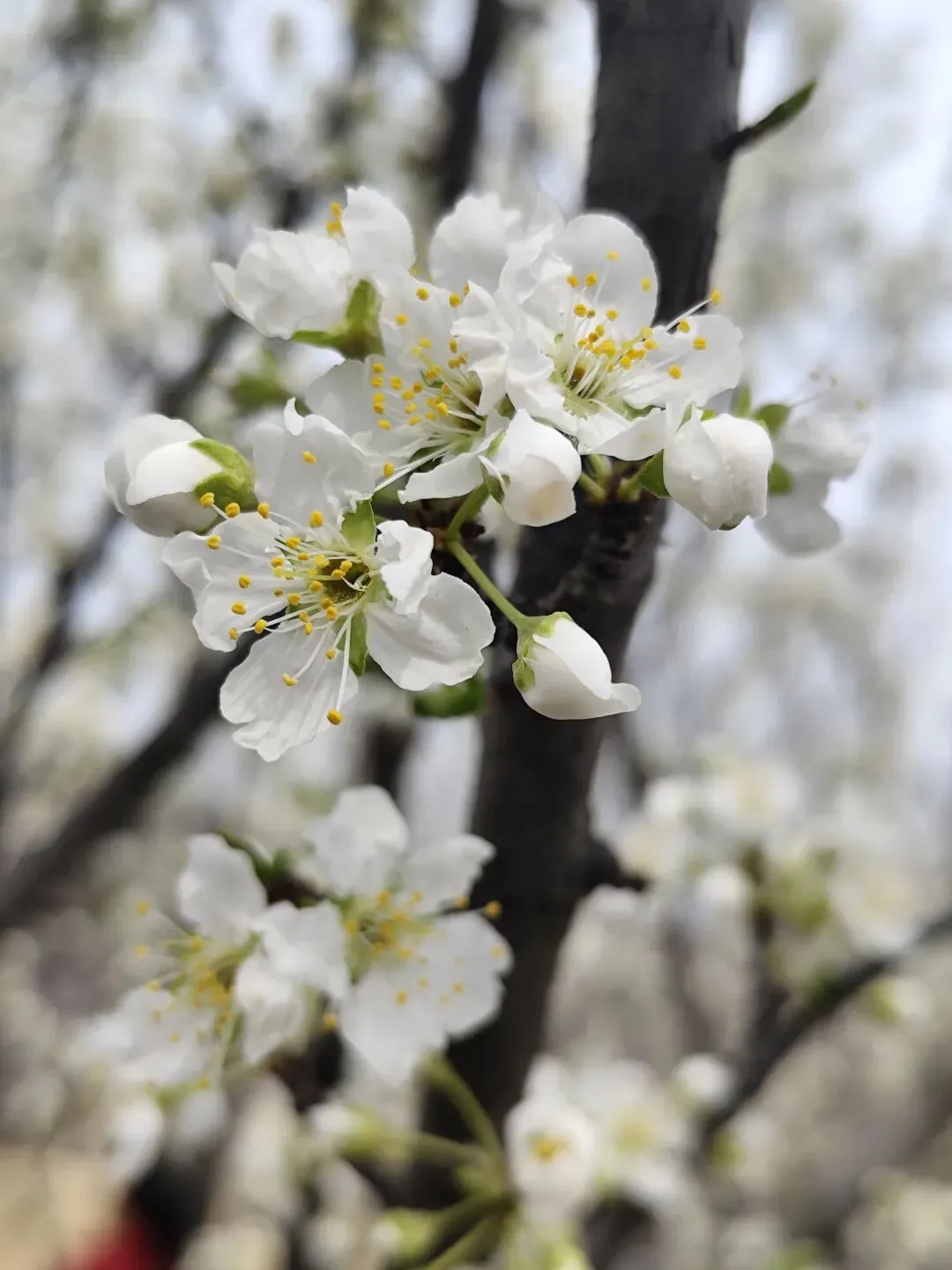 最吸引人的却是李花,淡雅洁白,清香如丝,素白花瓣配细长黄蕊,像山野间未施粉黛的少女,干净又温柔 ,自带清冷宁静 ,更惹人怜爱。