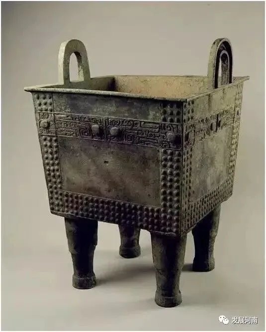 郑州市区出土的商代早期大型方鼎。郑州商城出土有数万件商代文物,其中包括数以千计的青铜器,里面有11口商代青铜鼎。