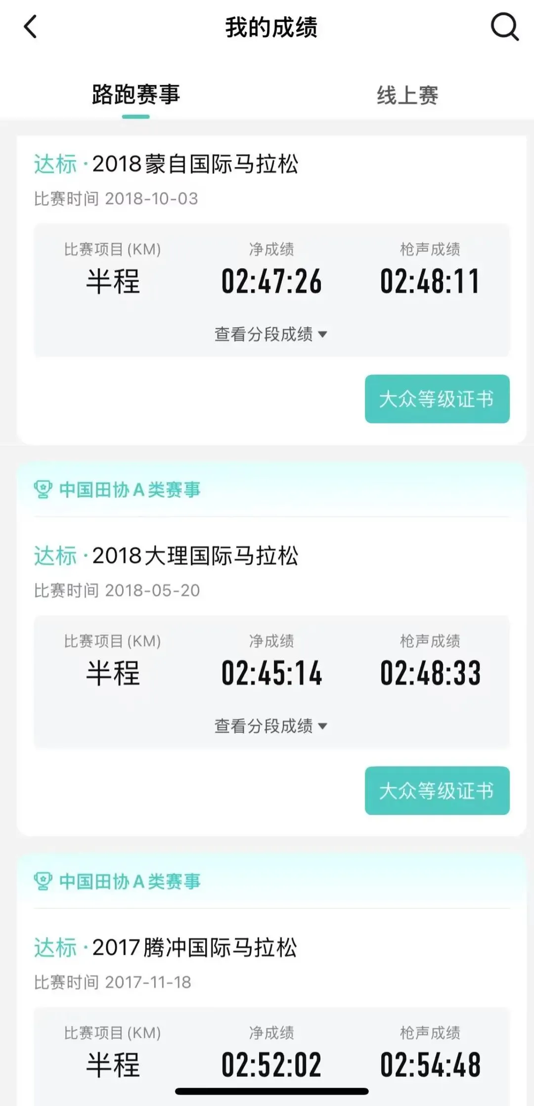 这个APP叫“数字心动”,可以查询以往跑过的赛事,不过不太完整