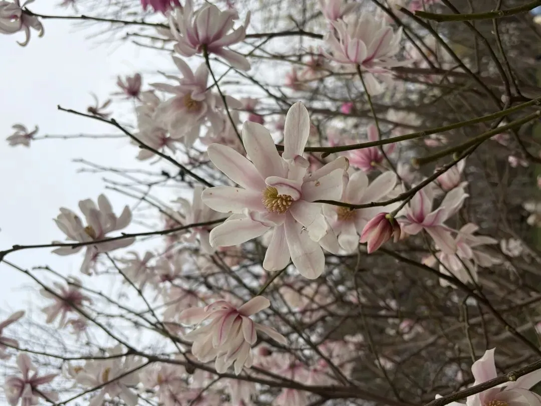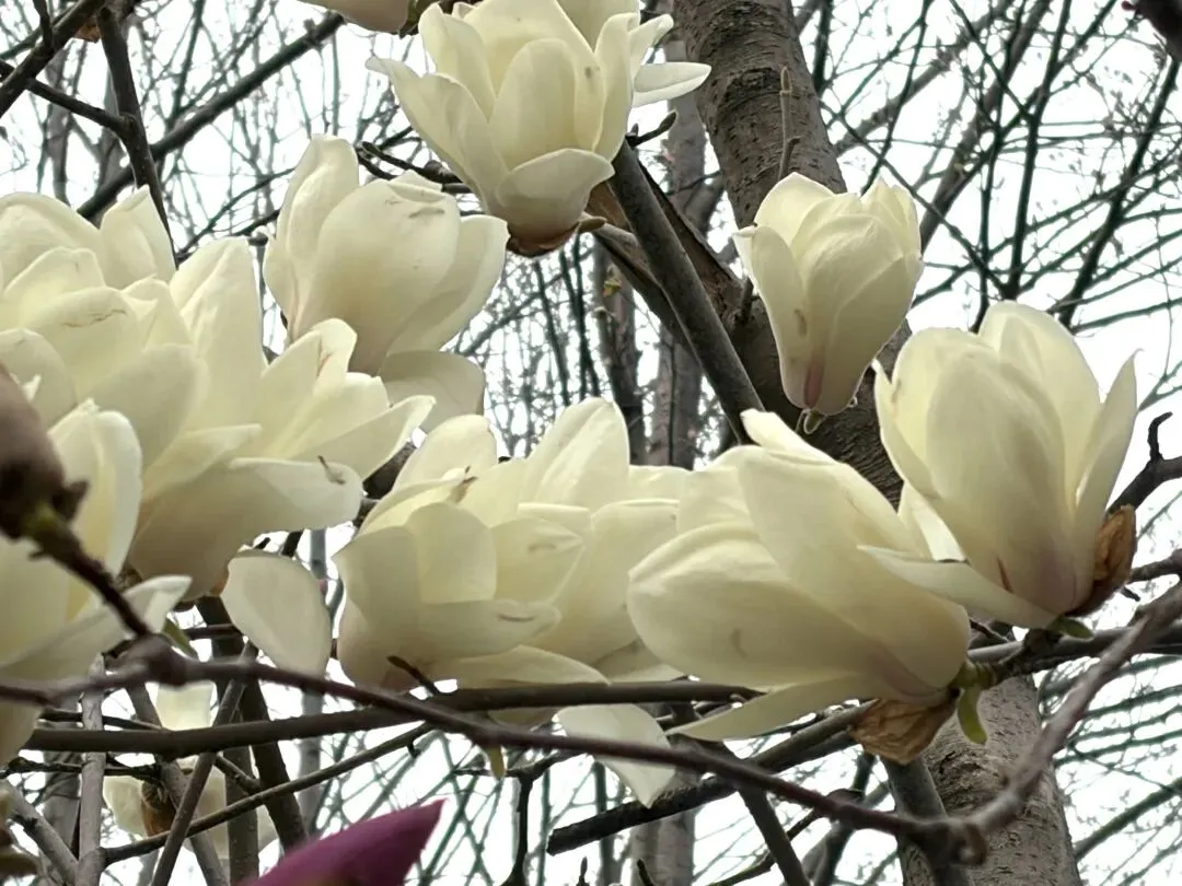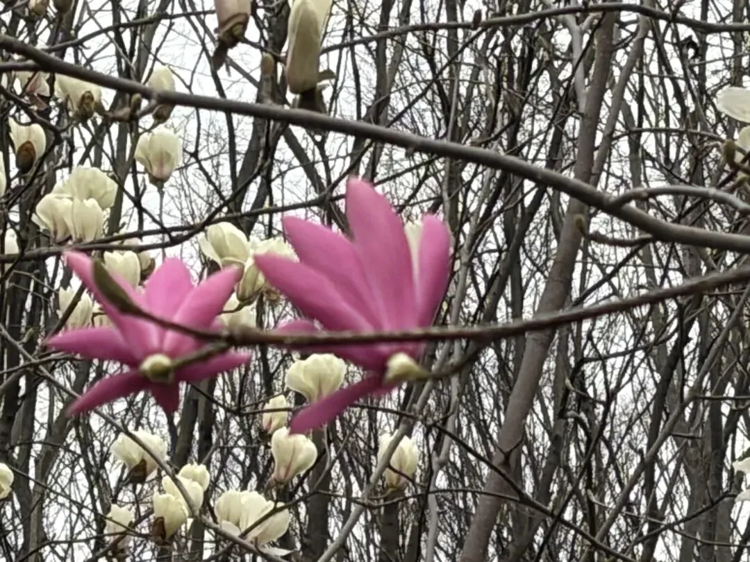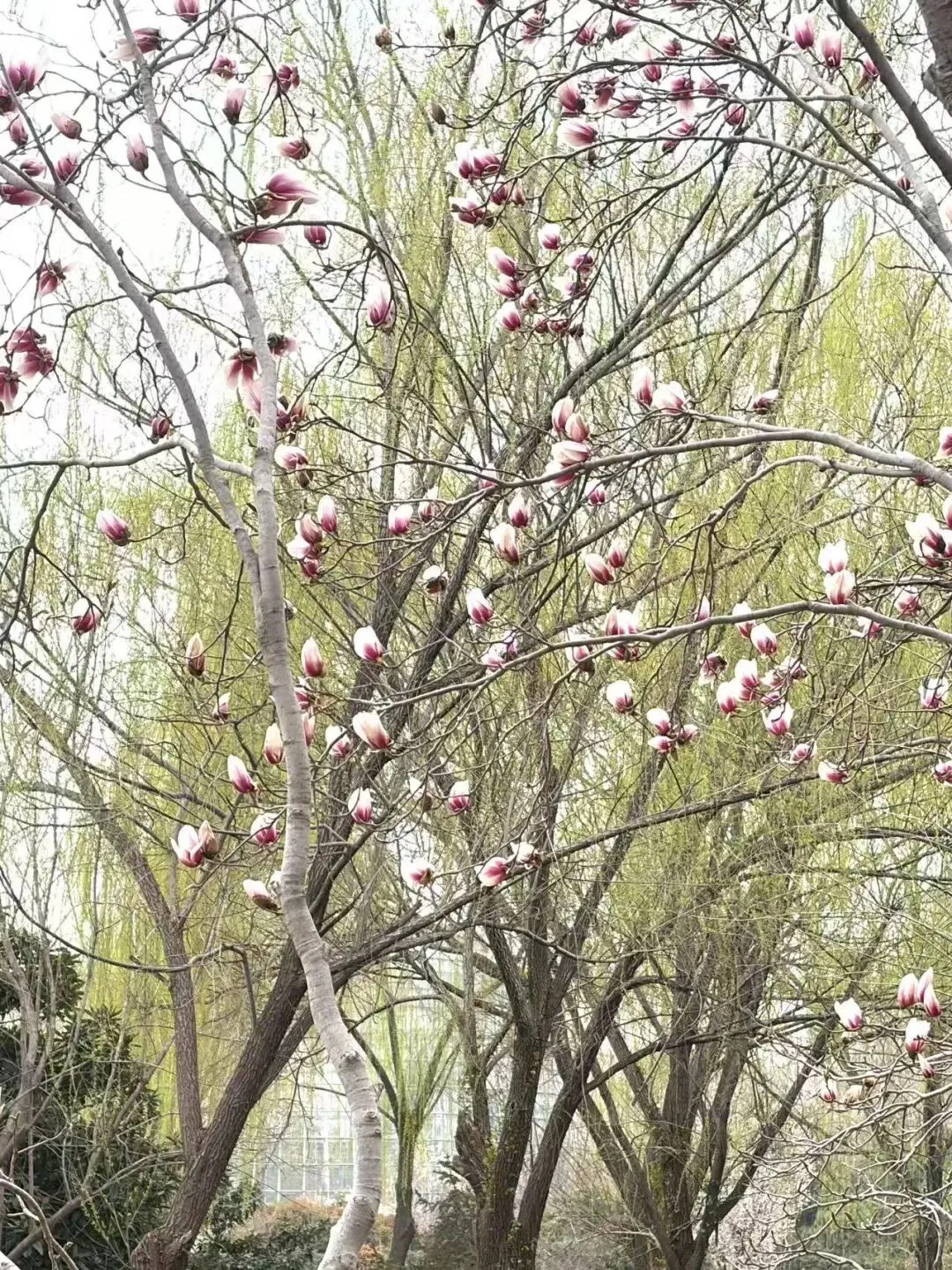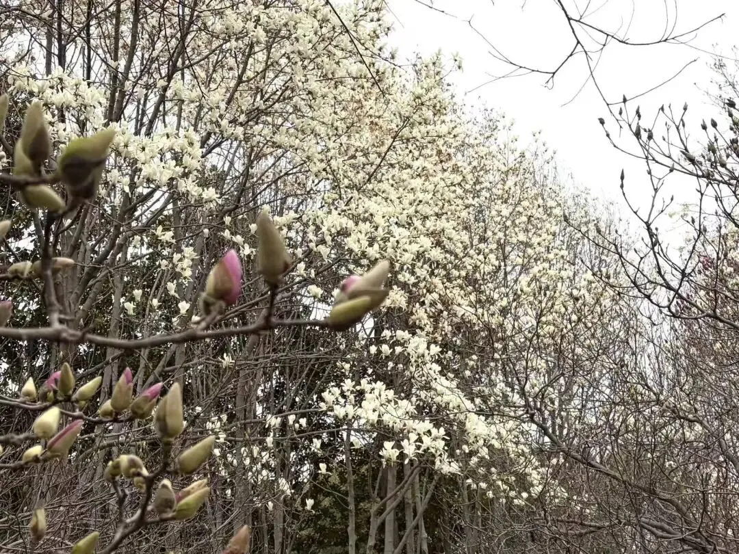 第一次看到植物园玉兰园百花盛开,除了常见的白色、黄色之外,还有多种稀有玉兰。有的粉如荷花,有的花瓣重重,有的细条如菊,