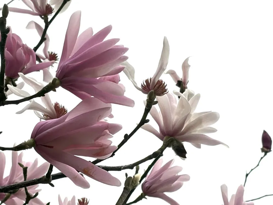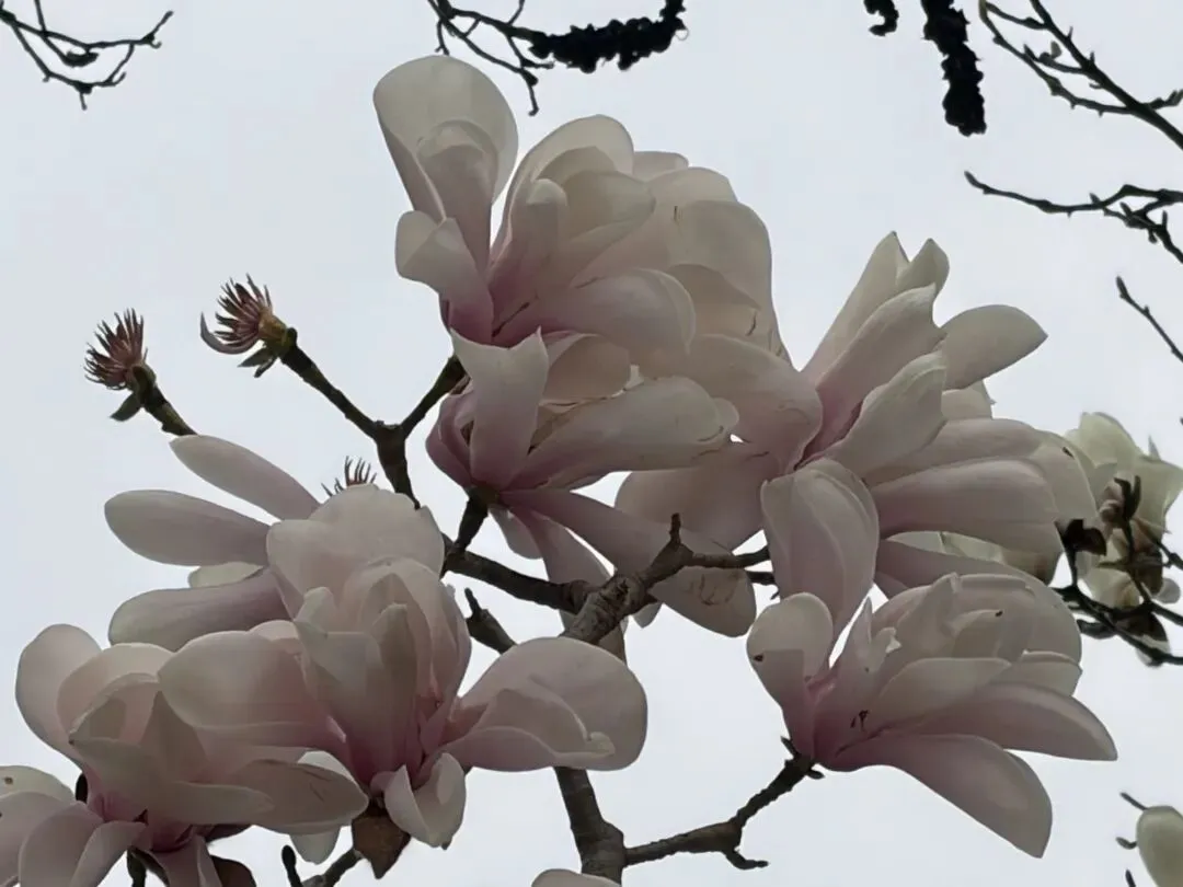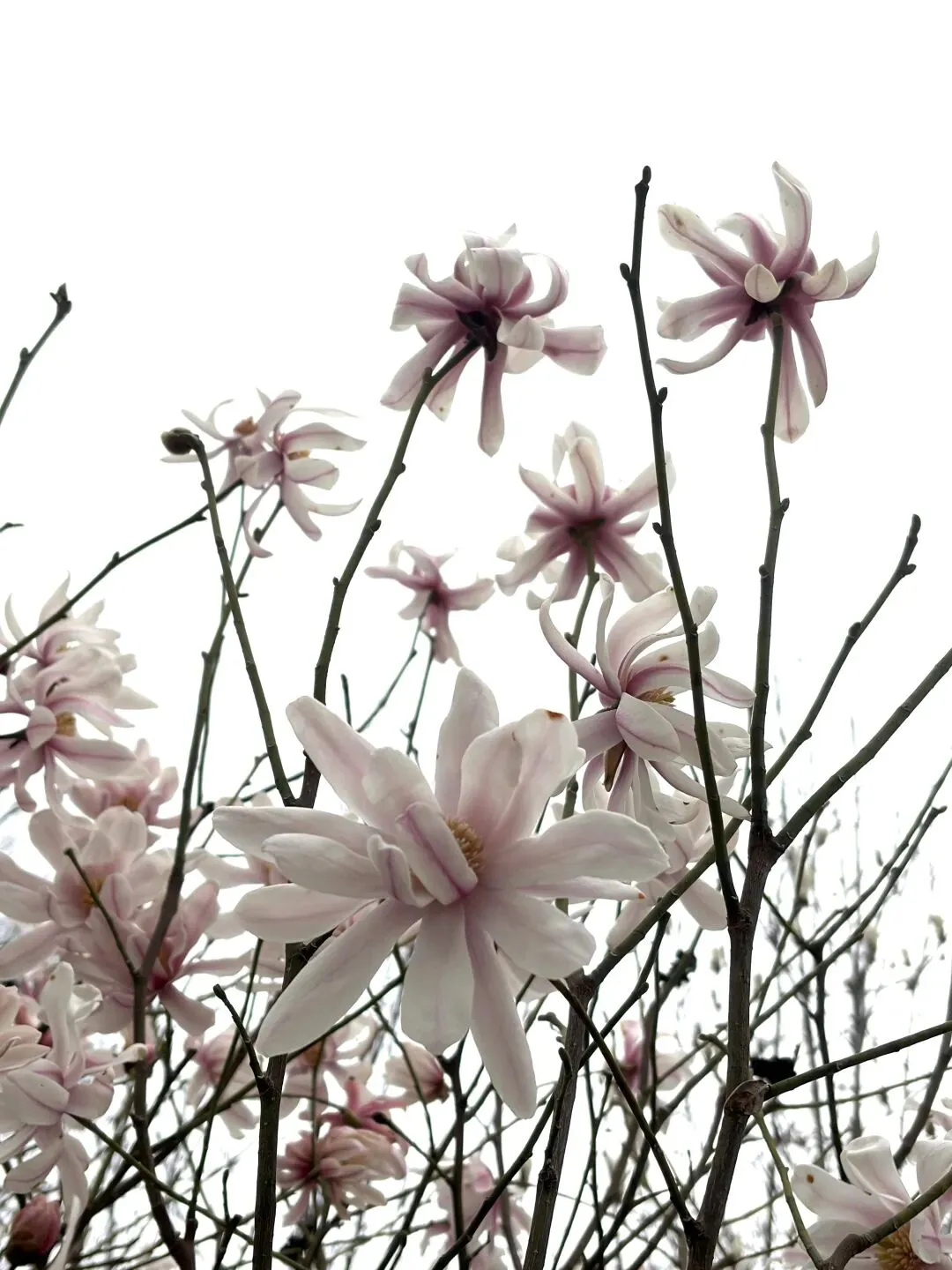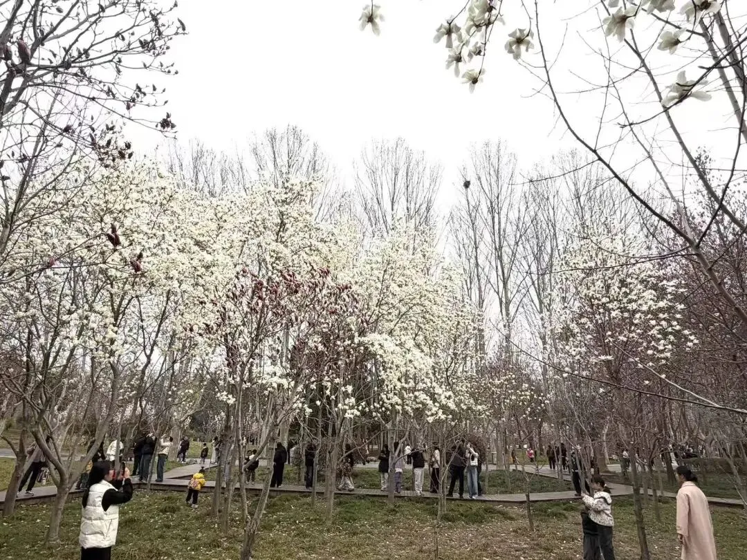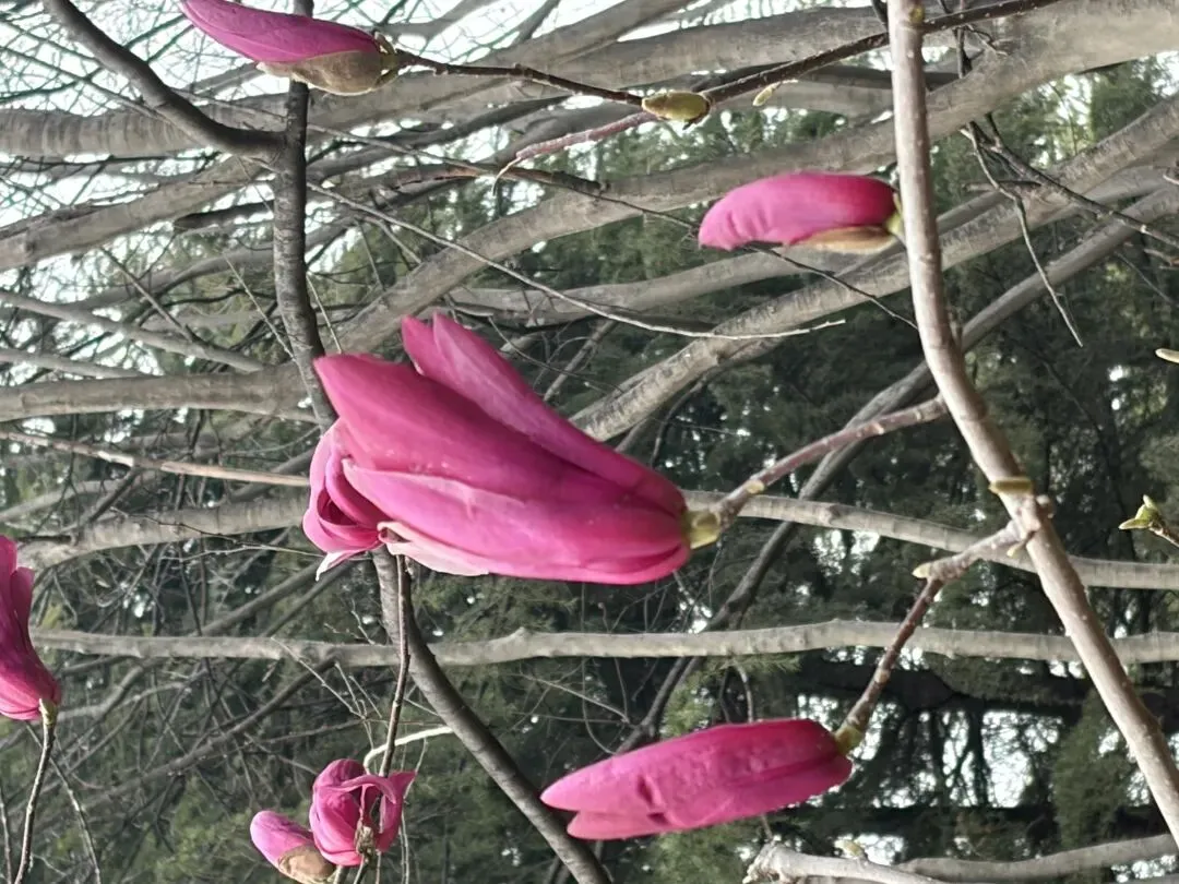 第一次看到植物园玉兰园百花盛开,除了常见的白色、黄色之外,还有多种稀有玉兰。有的粉如荷花,有的花瓣重重,有的细条如菊,