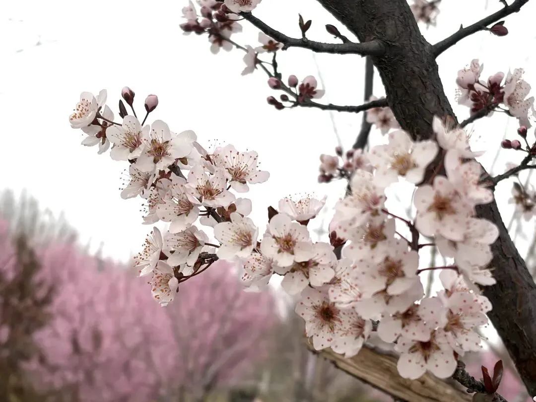 西四环高架边上一树粉粉的紫叶李,看起来比紧挨的另一株的粉嫩一些。