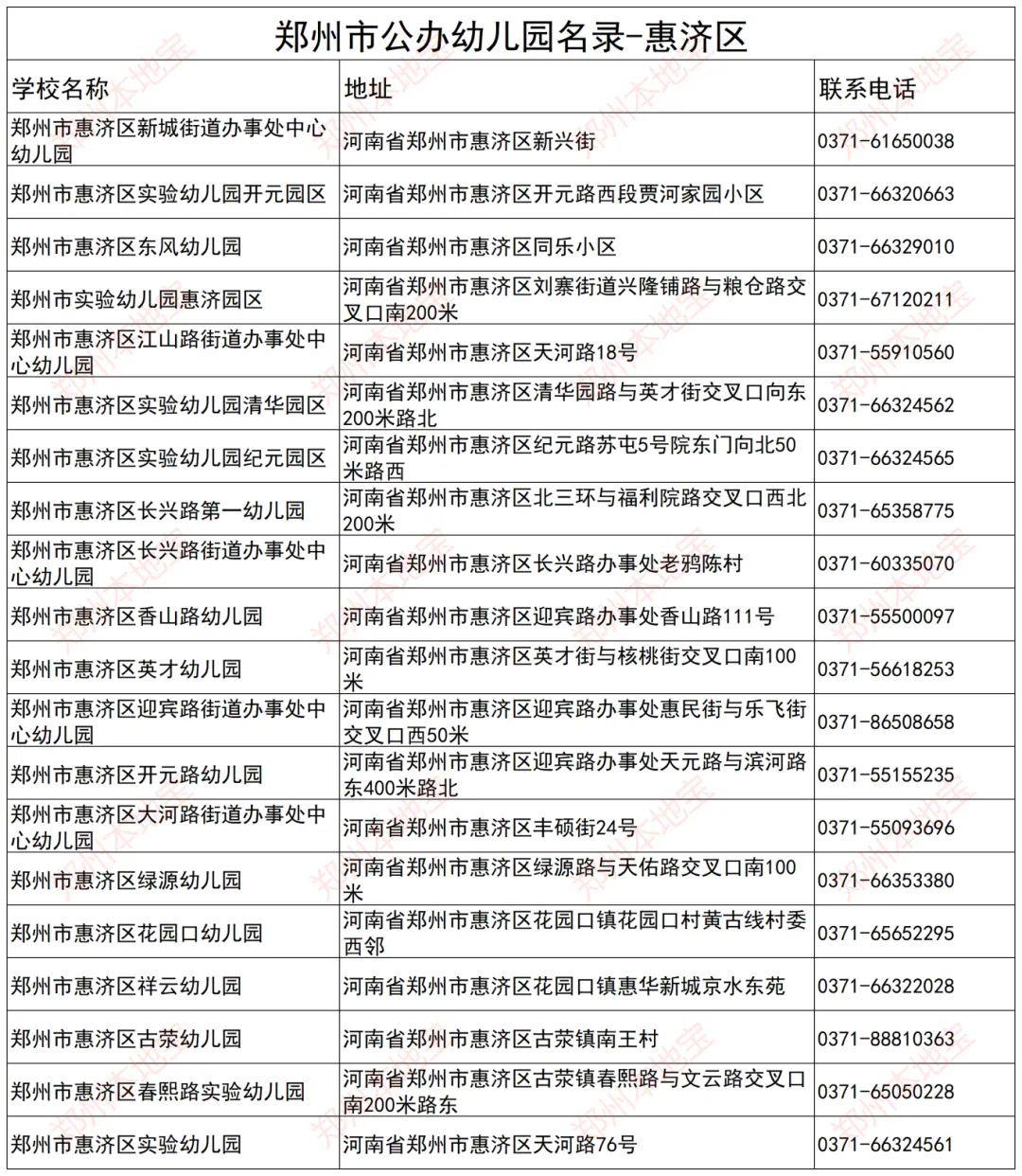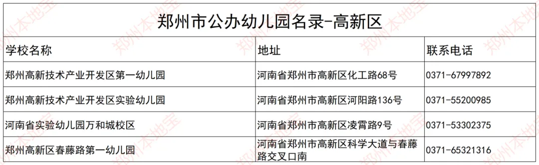 注:本文表格由郑州本地宝编辑整理,使用请注明来源!(幼儿园信息如有变化,以官方为准)