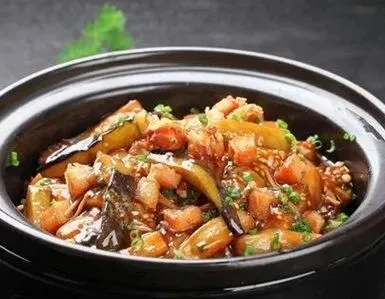 港式酱香排骨、鱼香茄子煲、豉油包菜、海带豆腐汤、米饭、学生纯牛奶。