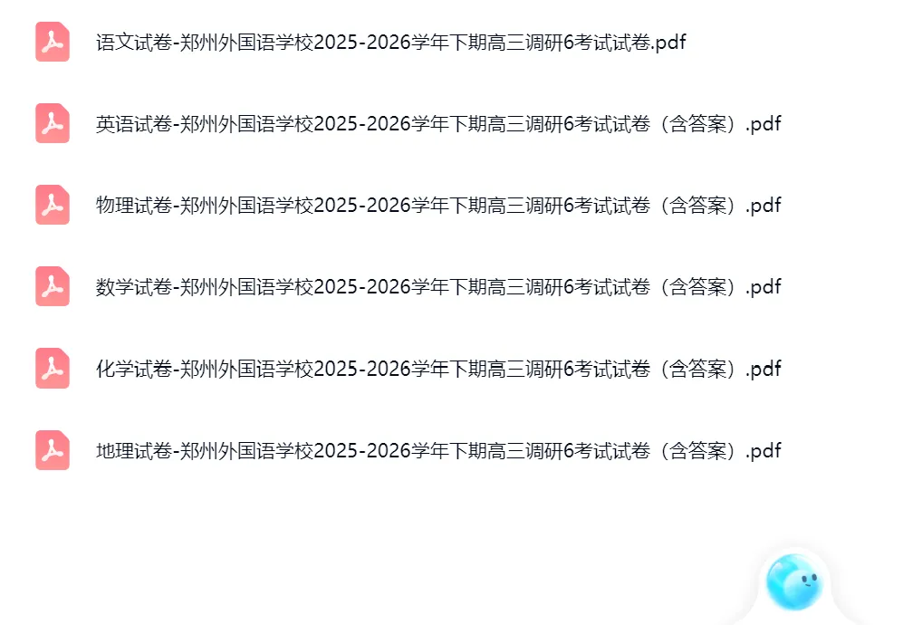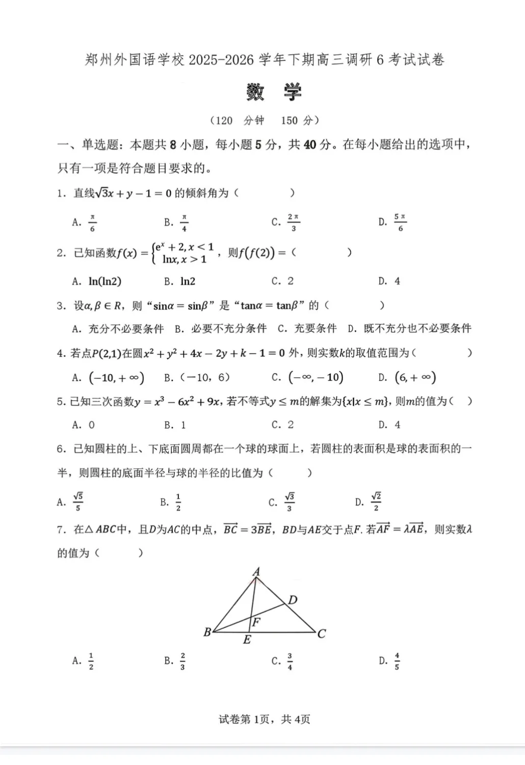 郑州外国语学校2025-2026学年下期高三调研6考试试卷(汇总)