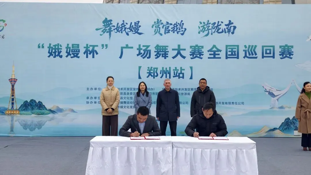 本次大赛以原创舞蹈《娥嫚》为载体,来自郑州的18支代表队、350余名爱好者同台竞技,现场气氛热烈、精彩纷呈。活动现场还举行了文旅友好合作签约仪式,宕昌县与郑州经开区正式签署合作协议,搭建起文旅交流、资源共享的坚实桥梁。