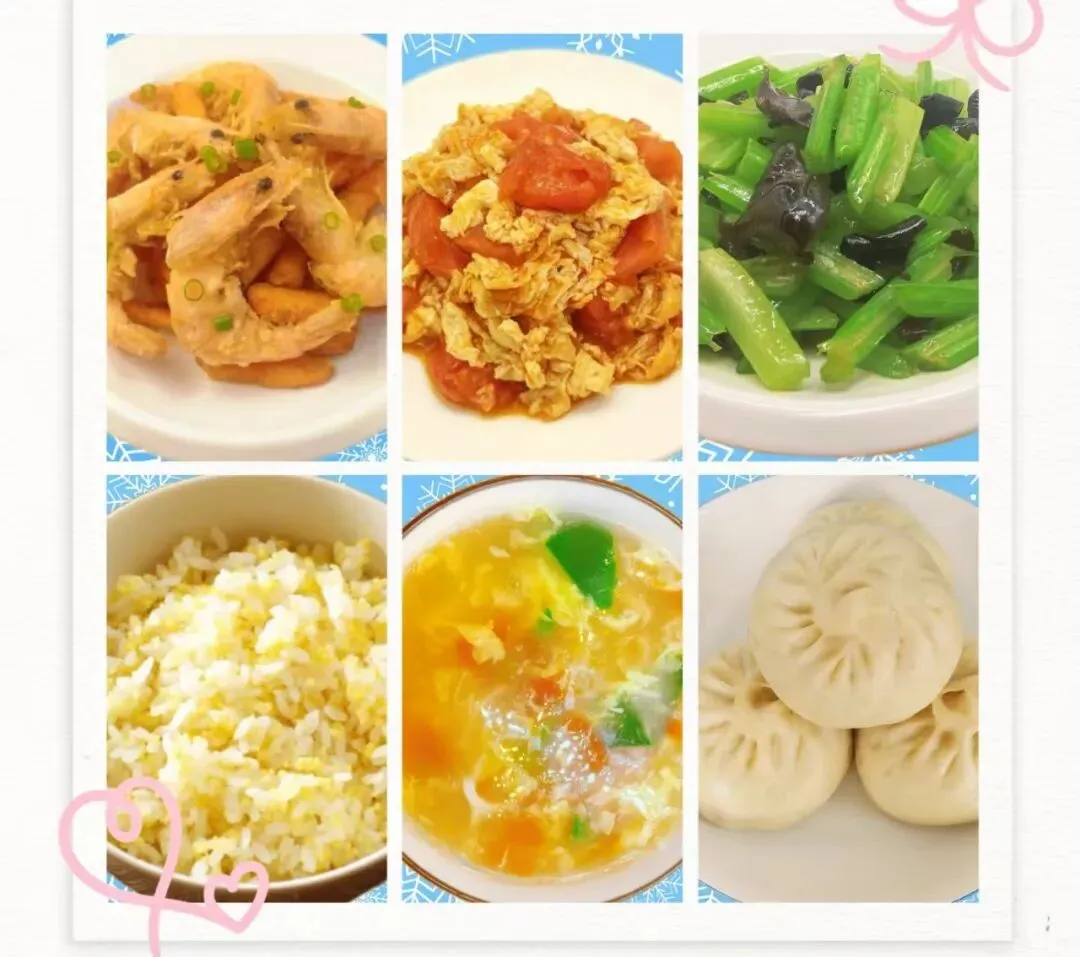 黄金米饭、西红柿蛋花汤、手工包子