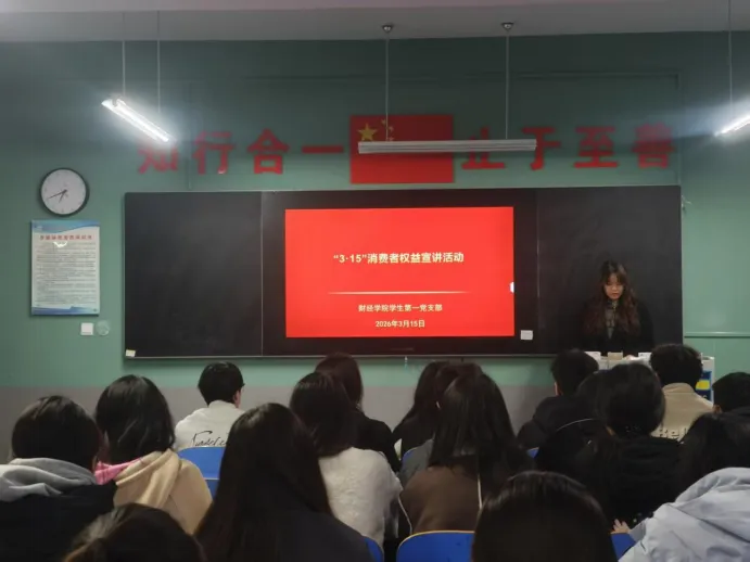 为深入学习贯彻习近平法治思想,落实立德树人根本任务,切实增强大学生消费维权意识与法治观念,防范校园消费风险,营造安全、诚信、和谐的校园环境,2026年3月15日,郑州科技学院财经学院学生第一党支部结合“3·15”国际消费者权益日,组织开展主题宣讲活动,支部全体入党积极分子参与本次活动。