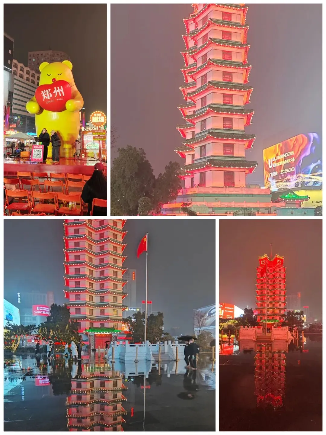 来了郑州,怎能不去看看新晋级的郑州地标玉米楼,其实正式名称是绿地中心·千玺广场(俗称大玉米),位于郑州郑东新区CBD如意湖畔,由美国SOM设计,主楼高280米,地下3层,地上多功分区,因夜间暖黄灯光下呈玉米状得名,设计灵感源自登封嵩岳寺塔。晚上湖边散步也是很惬意。