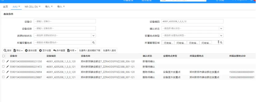 2、针对设备更换导致的同一设备编号出现“新增待确认”与“删除待确认”两条记录的情况,通过“设备替换”工单进行规范处理,竣工后合并为一条“正常数据”记录;
