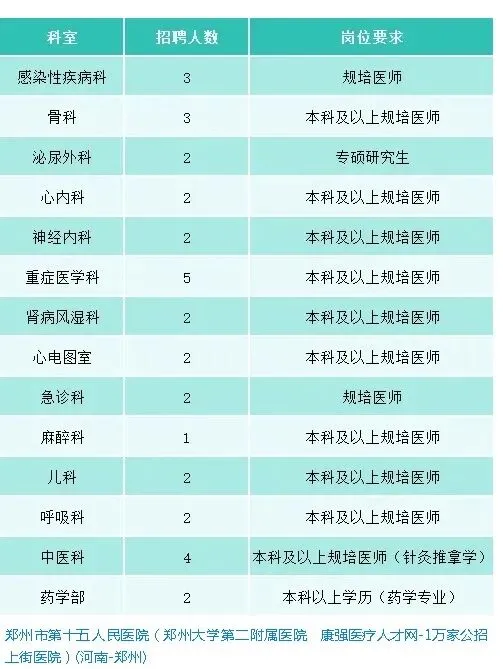 因为业务需要,郑州市第十五人民医院拟招聘医务人员,公告如下: