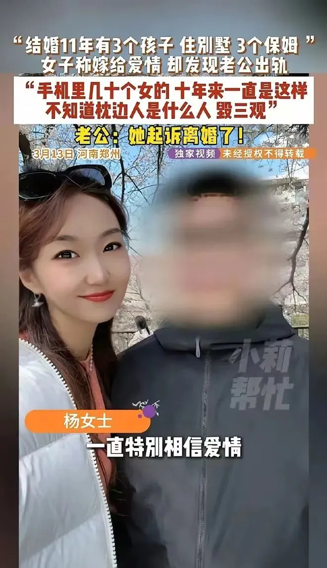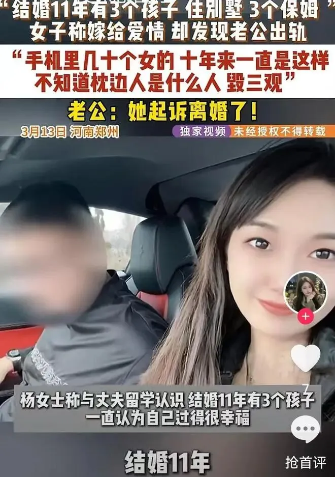 结婚 11 年,育有 3 个孩子,住别墅配 3 个保姆,丈夫年入过亿,在外人眼里,郑州杨女士活成了人生赢家。