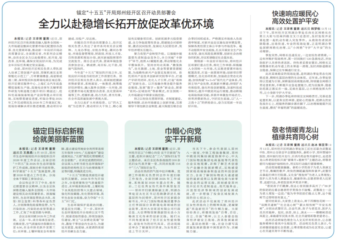 今年是“十五五”规划的开局之年,实现良好开局是当前经济工作首要任务。郑州经开区相关负责人表示,将深刻把握新形势新要求,系统谋划、一体推进,统筹做好经济增长、融入服务全国统一大市场、深化要素市场化配置综合改革、优化营商环境等工作,把握机遇、抢占先机、勇当先锋,在全市高质量发展中勇挑大梁。
