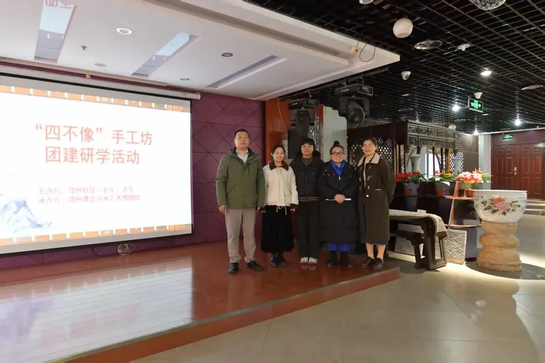 2026年3月15日上午9:30,郑州社区大学“四不像”手工坊在郑州博金书画艺术博物馆组织开展“翰墨润匠心·书画聚团队”团建研学活动。郑州美宜典设计有限公司作为“四不像”手工坊共建单位之一,公司骨干与手工坊全体成员共同参与本次活动,以书画美育赋能手工创作,共商工坊创新发展路径。