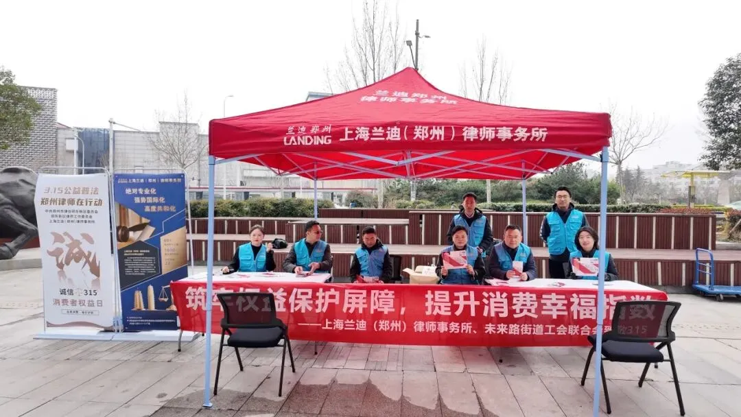 为深入践行法治为民宗旨,切实提升广大消费者的维权意识和能力,上海兰迪(郑州)律师事务所积极响应号召,于2026年3月15日在郑州市金水区曼哈顿升龙广场,成功举办了以“筑牢权益保护屏障,提升消费幸福指数”为主题的公益普法宣传活动。