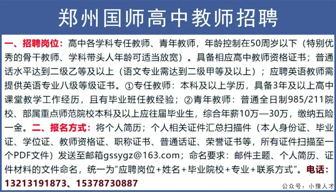 >郑州国师高中教师招聘