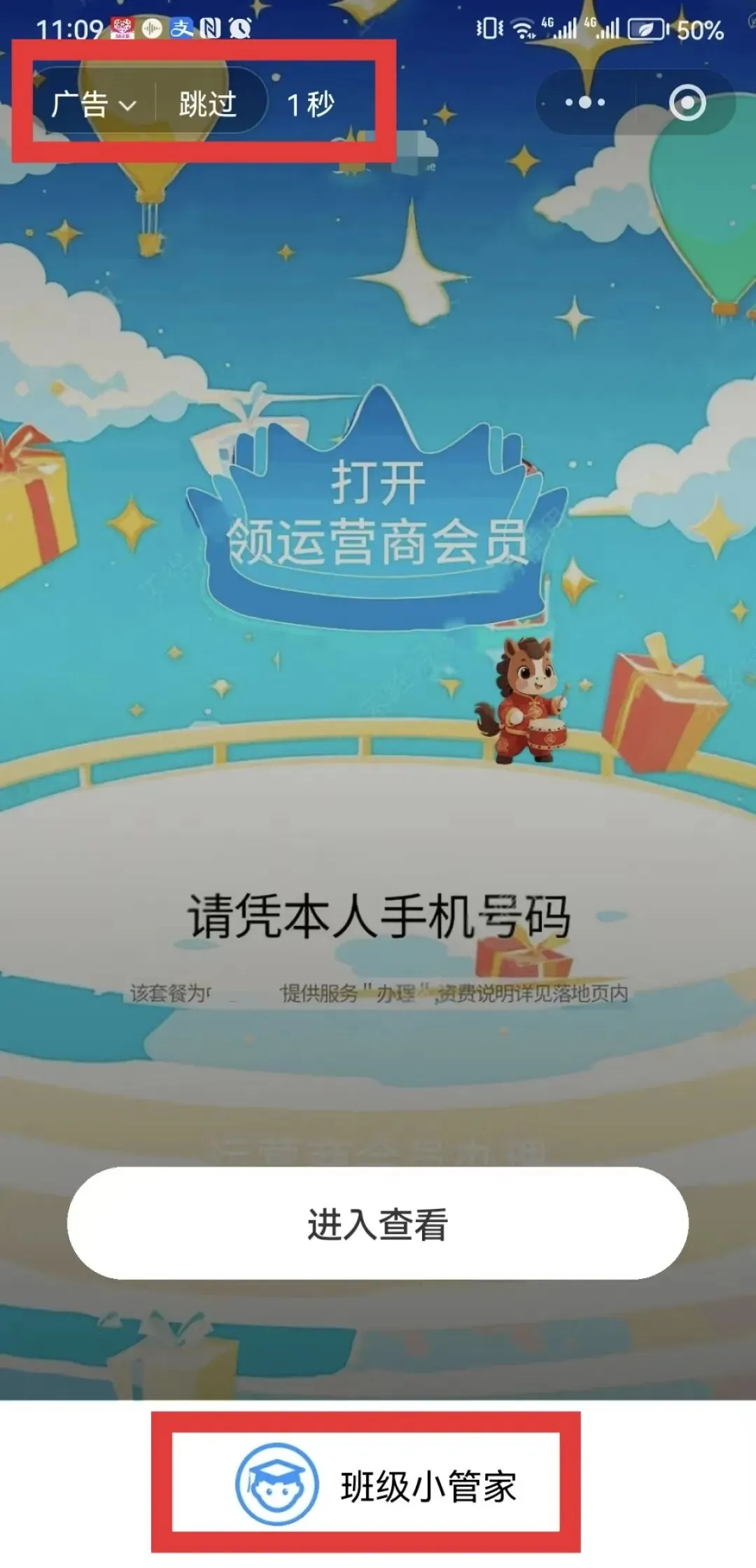 据陈明亮介绍,这款在家长群中广泛使用的“班级小管家”,是老师用来布置作业、学生打卡学习的常用工具。可每次点开并非直接进入作业页面,而是先弹出3秒左右的广告,内容涵盖旅游、餐饮、通讯运营商业务等。随后,陈明亮向记者提供了多张进入小程序时的广告截图,截图左上角有小字标注“广告”字样。