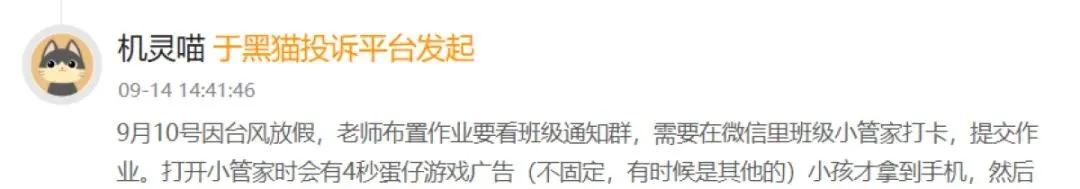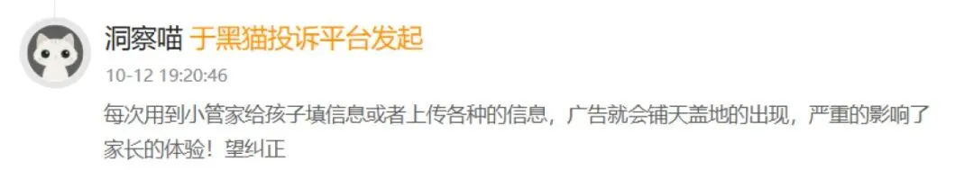 (家长在投诉中明确表示广告严重影响使用体验)