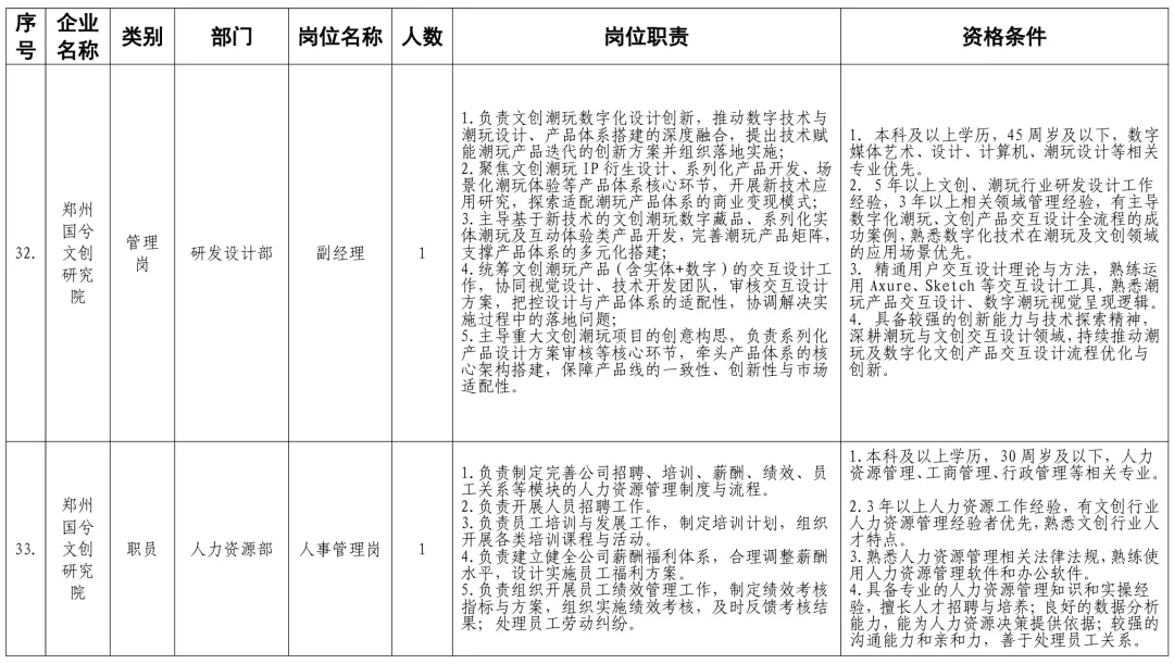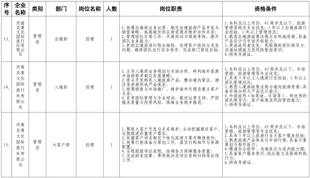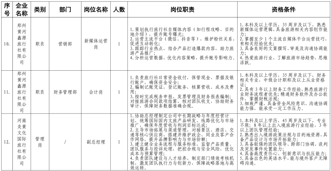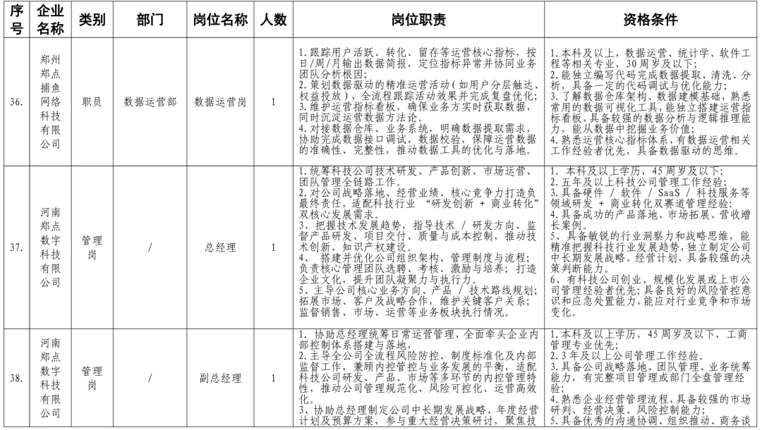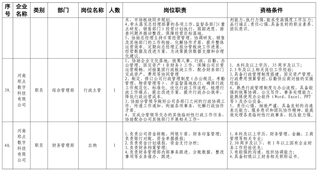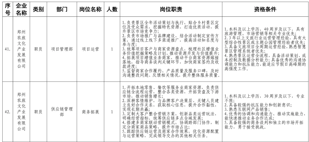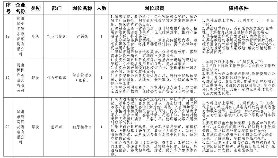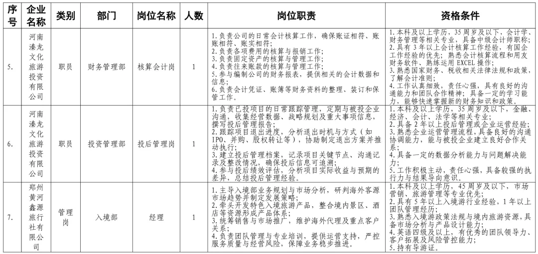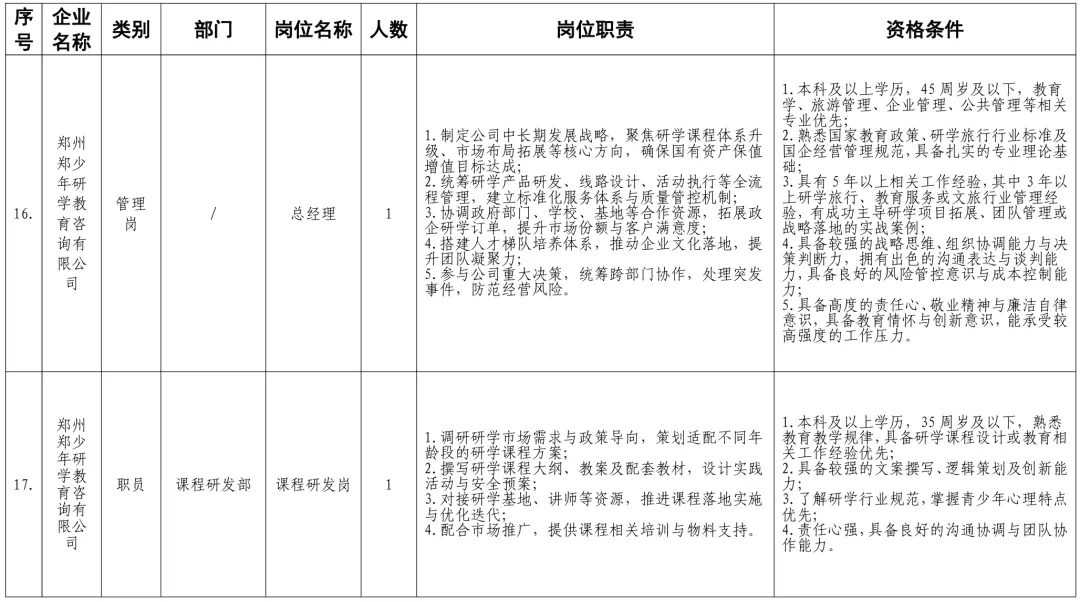 招聘岗位及有关要求见《郑州体育产业集团有限公司等16家国有企业公开招聘岗位任职条件表》。