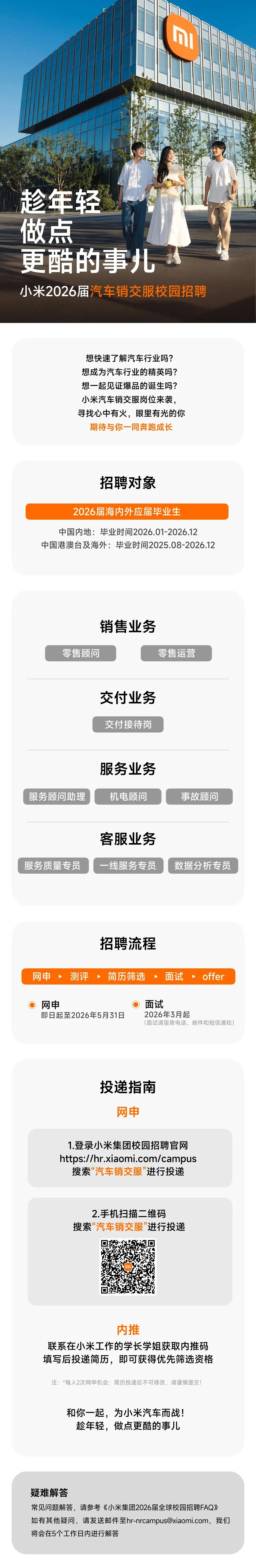 小米集团2026届汽车销交服春季校园招聘正式启动