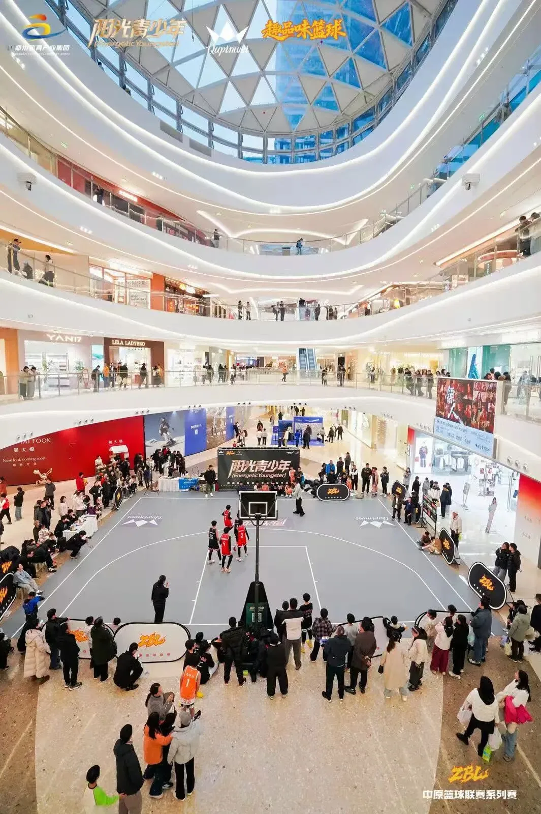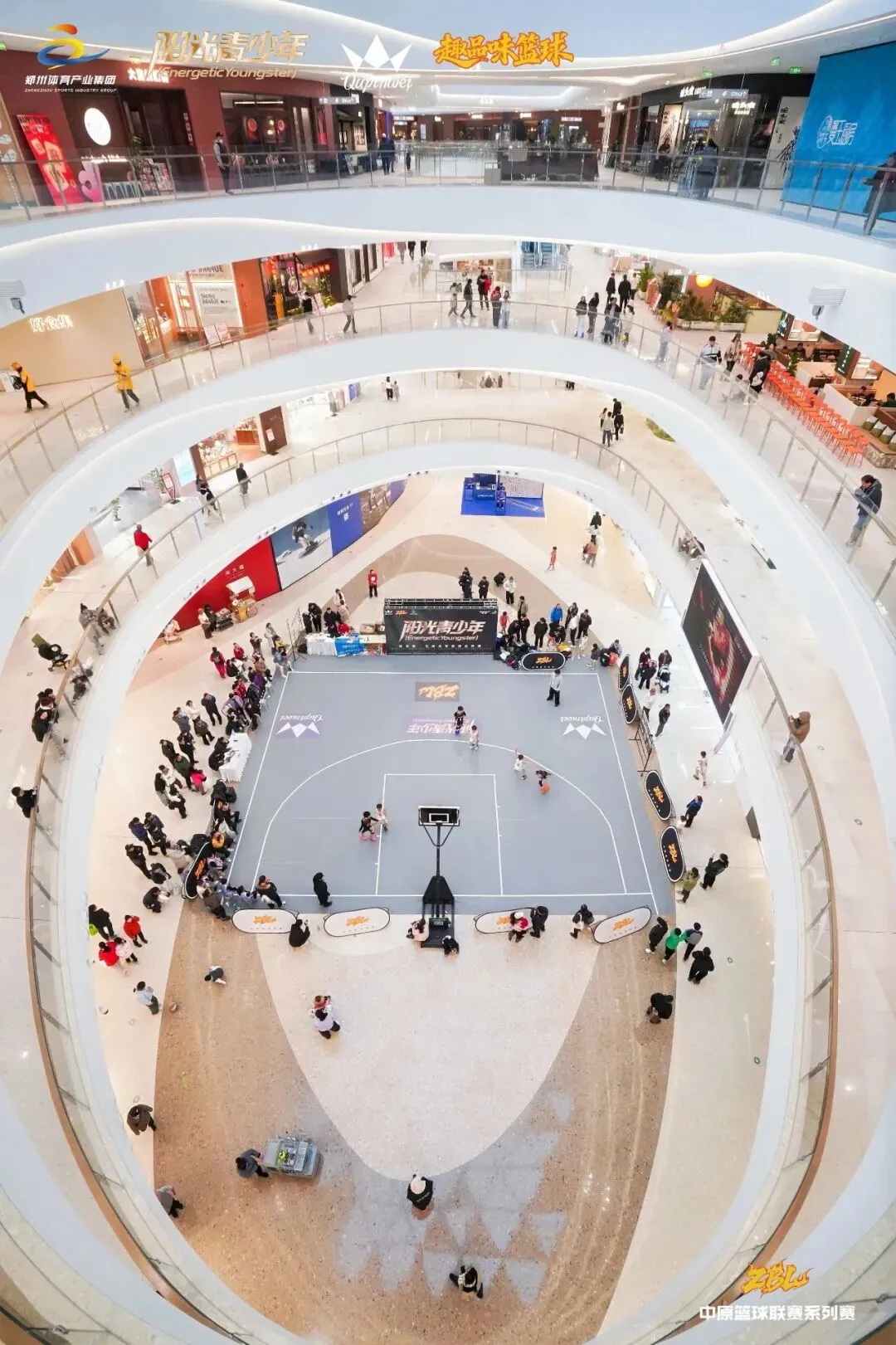 3月14-3月15 日,阳光青少年·趣品味九鼎少年篮球公开赛(郑州站)在金水区龙湖天街商场中厅圆满落幕。两天的热血对决里,6大组别,35支队伍,约150名参赛球员。家长亲友团近500人抵达赛场加油助威。共超过7万线上线下观众观看了本次赛事。用汗水与拼搏书写了属于少年的篮球篇章,为这场春日篮球盛宴画上了完美句号。