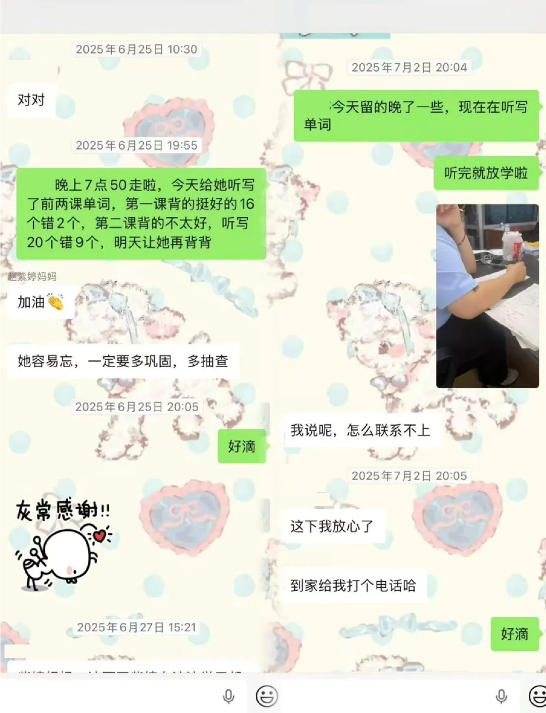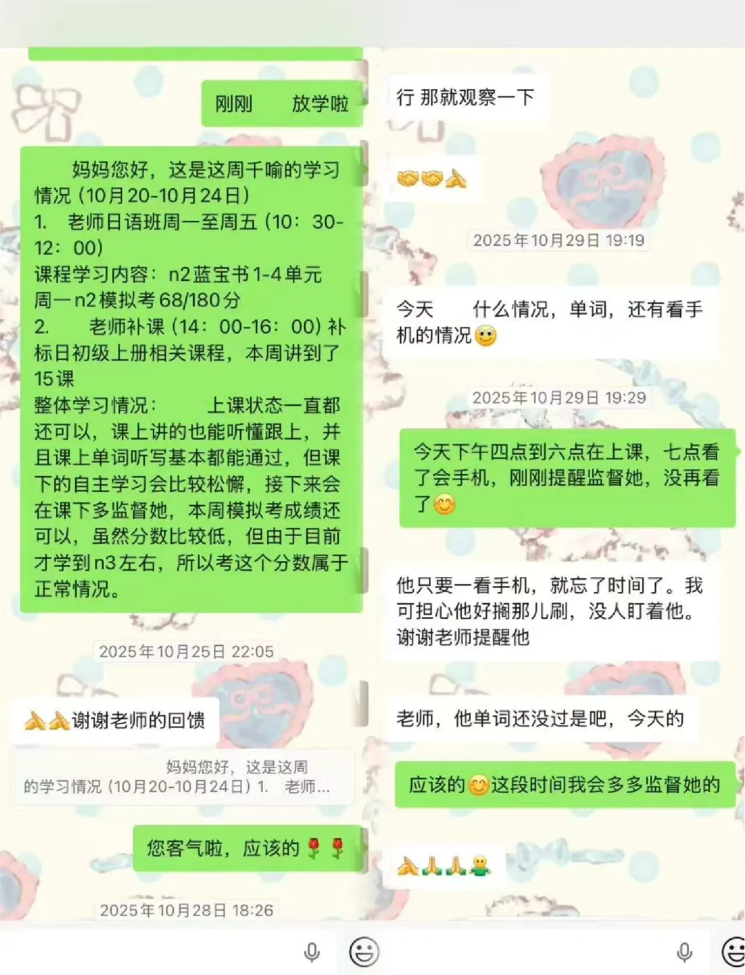【家长汇报】定期向家长同步同学的学习表现与测验成绩。