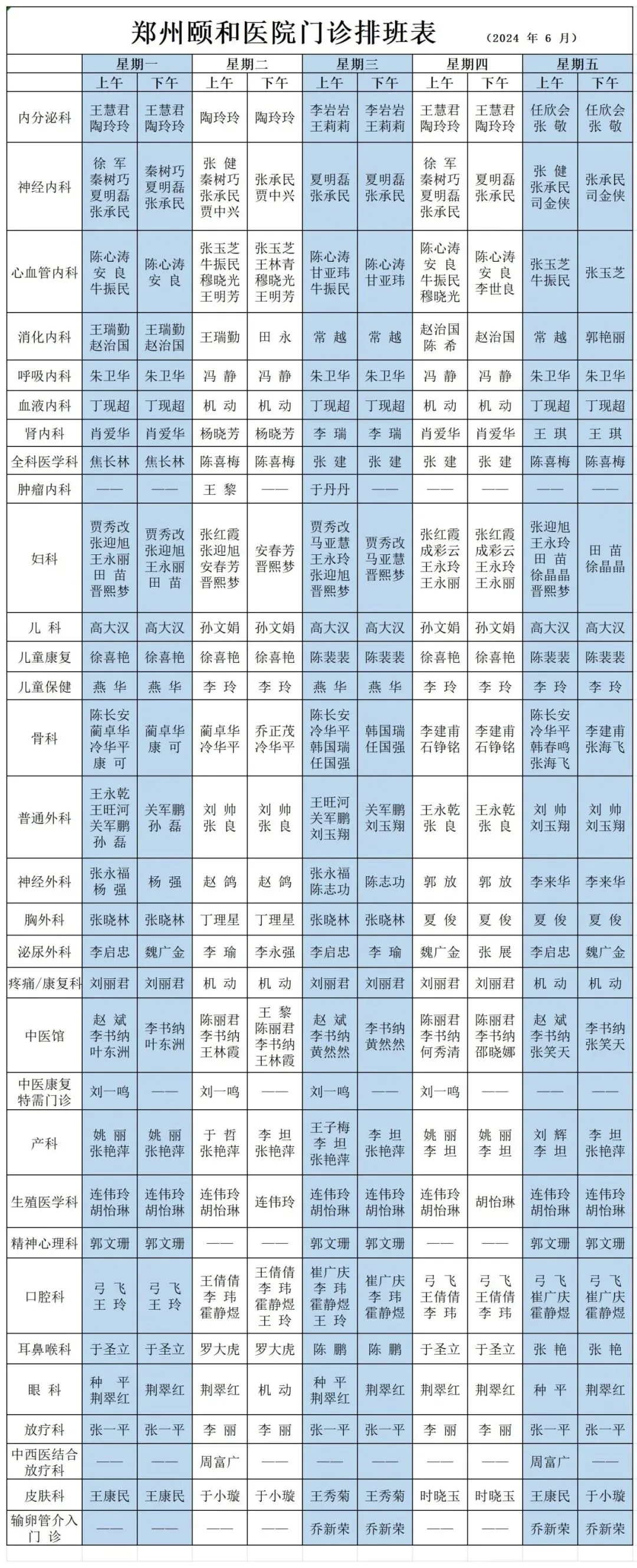 门诊排班表