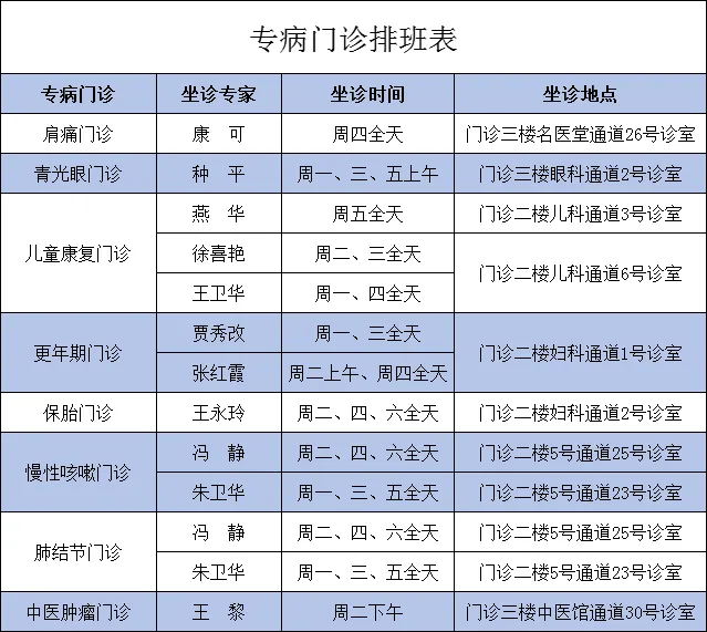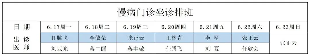 慢病门诊排班表