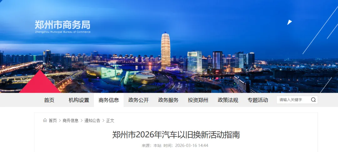 现就郑州市2026年汽车以旧换新活动有关事项公告如下: