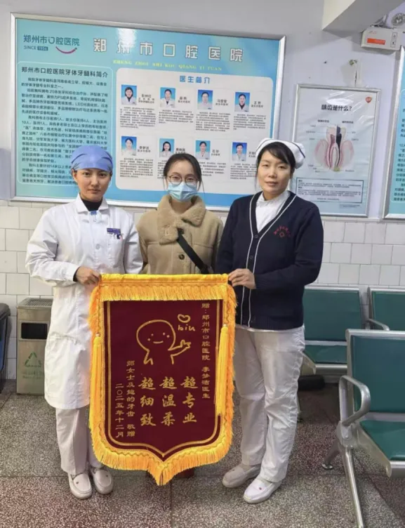 “特别感谢李梦洁医生,不仅技术好,态度也特别亲切,让我对整个看牙过程都很放心!”2026年1月15日,师女士专程返院赠送锦旗。她激动地表示,李医生不仅技术精湛,更在诊疗中展现出“换位思考”的共情力,从治疗方案的通俗讲解,到术后护理的贴心叮嘱,处处体现对患者的尊重与关怀。这面锦旗,既是她对李梦洁医生个人医术与医德的褒奖,更是对郑州市口腔医院始终坚持“以患者为中心”服务理念的高度认可。