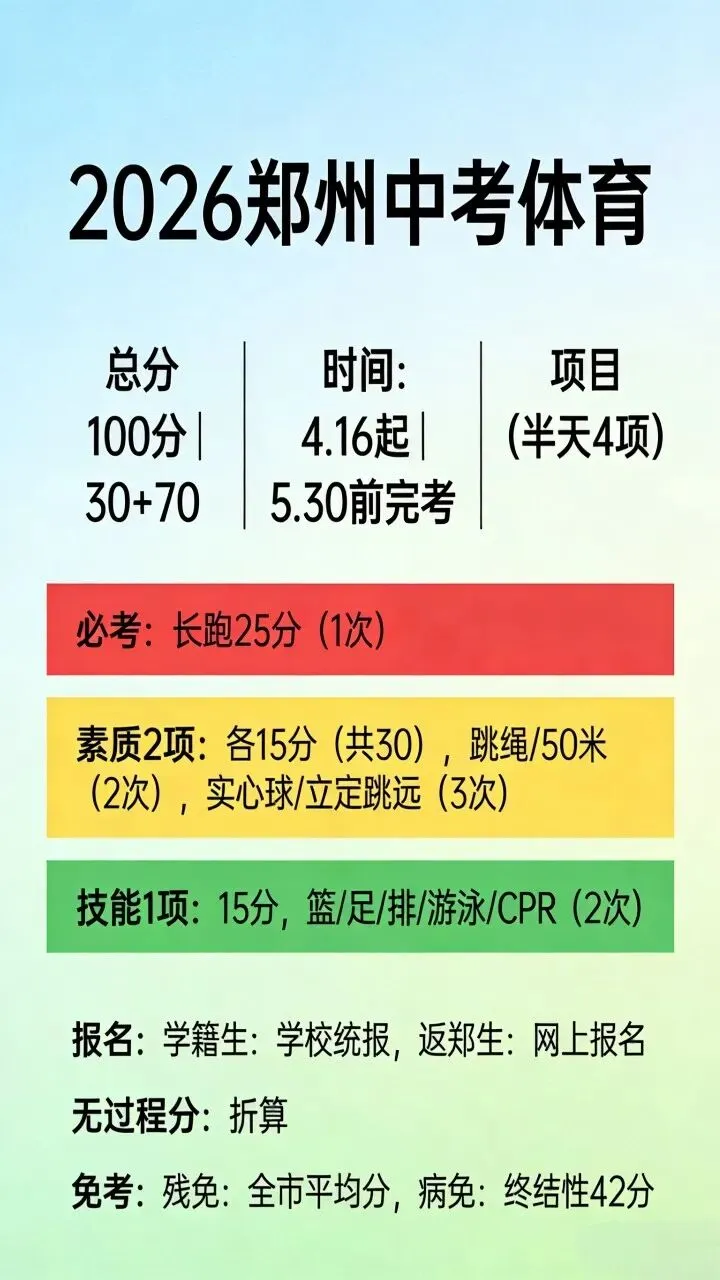 《3月16日,郑州市教育局发布2026年郑州市初中毕业升学体育考试政策!》