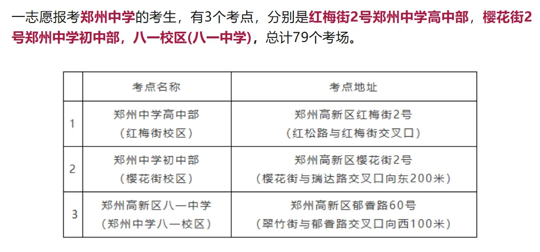 第一志愿报考郑州外国语学校的考生,考点安排在郑州外国语学校和郑州外国语新枫杨学校。