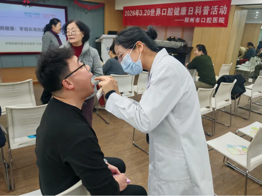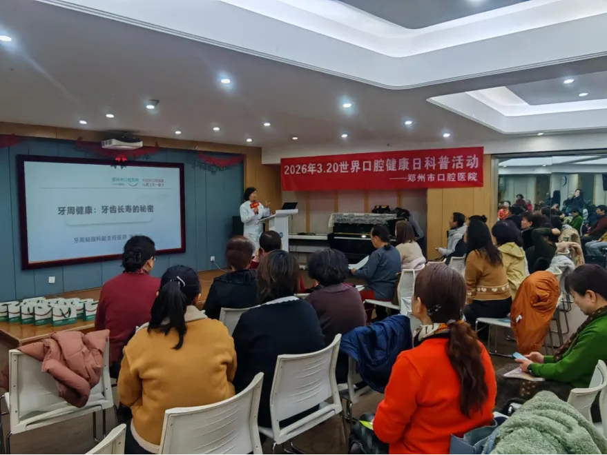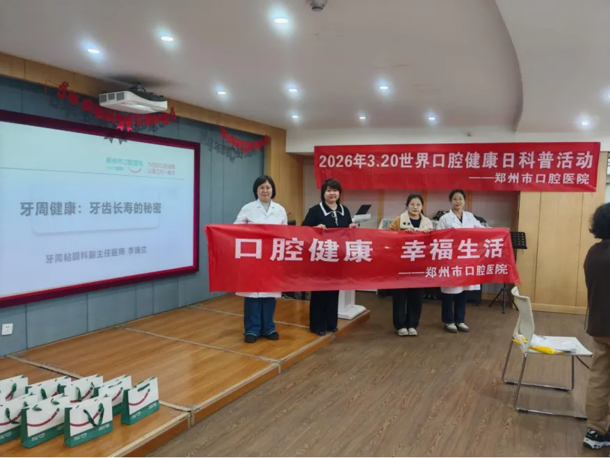 3月13日下午,在2026年世界口腔健康日即将到来之际,一场以“健康口腔 幸福生活”为主题的口腔健康科普活动在郑州金成国贸大厦永源艺术中心声乐公益课程培训部举行,预防科主任医师孙琦、红专路分院牙周科副主任医师李瑞兰、正畸科主治医师王明洁、儿童口腔科护士夏文婷组成专家团,为艺术中心合唱团成员送上“世界口腔健康日”提前礼。