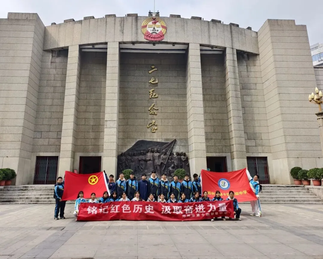 为深入推进红色文化育人实效,引导学生在行走的课堂中感悟历史底蕴、传承精神基因,近日,郑州市第十四初级中学的共青团员们在校党支部书记张明的带领下走进郑州市纺织工业遗址博物馆、郑州二七纪念塔与二七纪念堂,开展主题红色研学实践活动,让红色基因在青春心中落地生根。