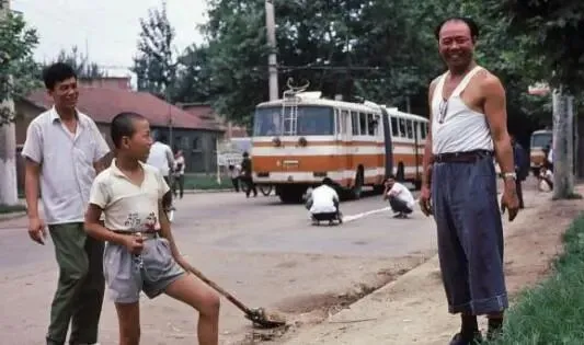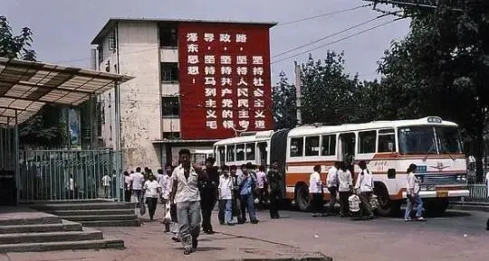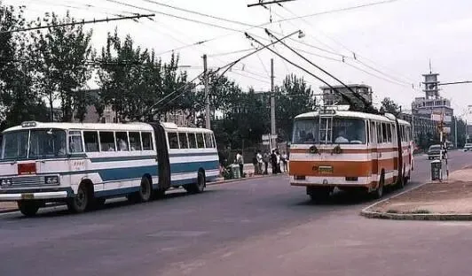 1980年代郑州市区宽阔的道路,仅有公交车电车在行驶,基本上看不到汽车。