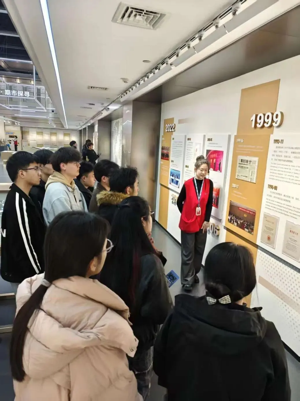 在郑商所专业讲解员的引导下,师生一行先后参观了郑商所期货和衍生品博览馆、现代投资者教育基地。通过详实的图文史料、珍贵历史实物及沉浸式多媒体演示,同学们系统学习了中国期货市场从起步探索到规范成熟的发展历程,全面了解郑商所覆盖农产品、能源、化工等多领域的核心交易品种、市场运行机制,以及期货市场服务实体经济、管理价格风险的典型实践案例。