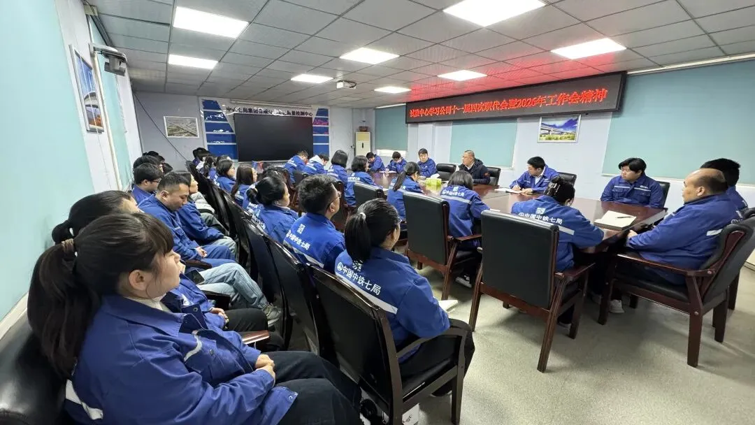 自中铁七局郑州公司第十一届四次职代会暨2026年工作会召开以来,所属各单位迅速行动、精心部署,以“学深悟透、知行合一”为主线,全面掀起学习宣贯热潮。通过“线上+线下”双轨并行、分层推进的方式,依托专题会、班前会、工作群、宣传展板、微视频等多元载体,第一时间将会议精神传达到基层一线、传递到每名职工,确保公司“两会”确定的“创新、创优、创效、创誉”工作主线和“高质量完成年度目标任务”要求深入人心、落地生根,为全年工作开好局、起好步凝聚思想共识、汇聚奋进力量,以实干实绩为“十五五”高质量开局筑牢根基、增添动能。