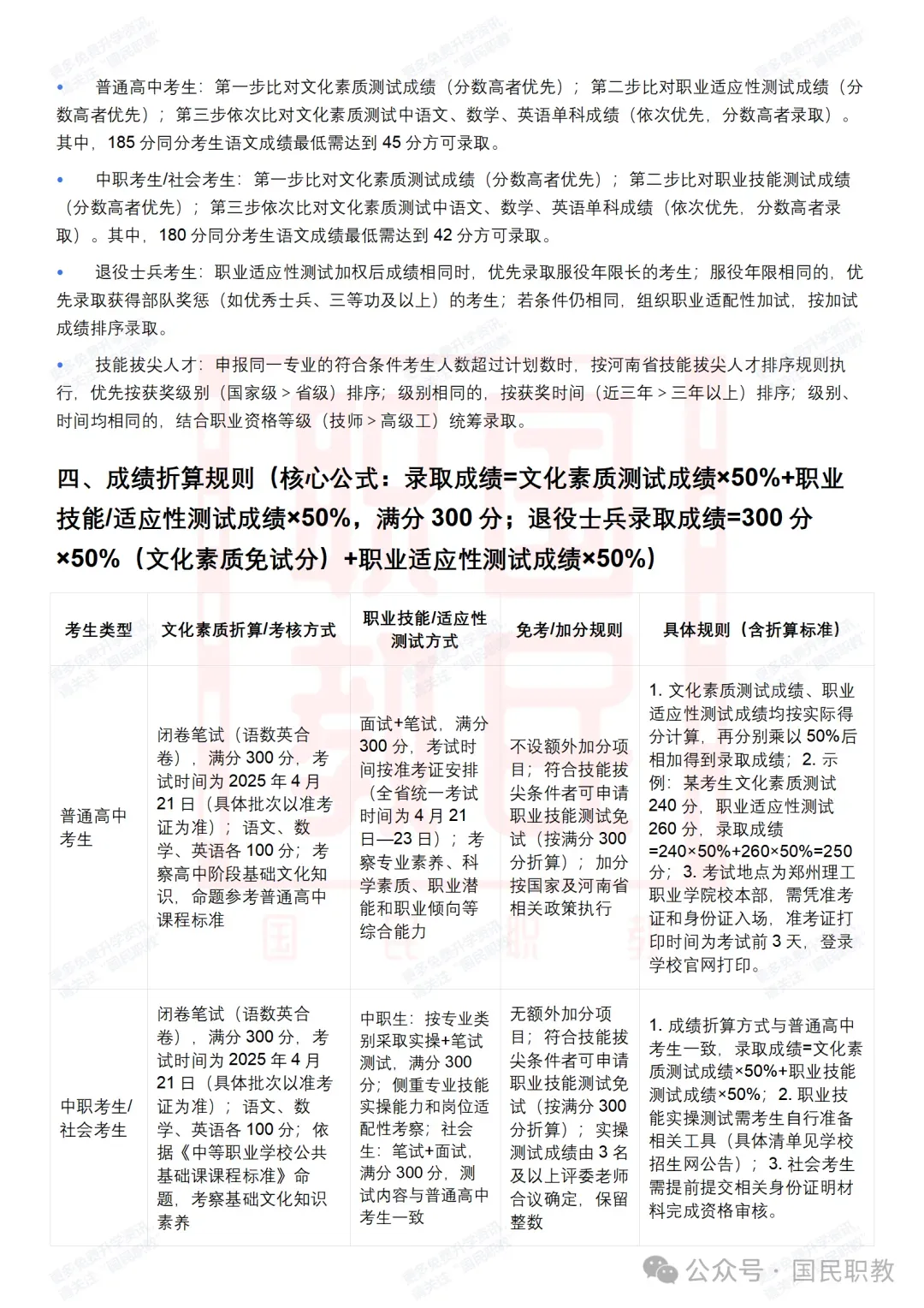 备注:以上为2025 年单招章程核心介绍,2026 年招生章程以官方发布为准!!