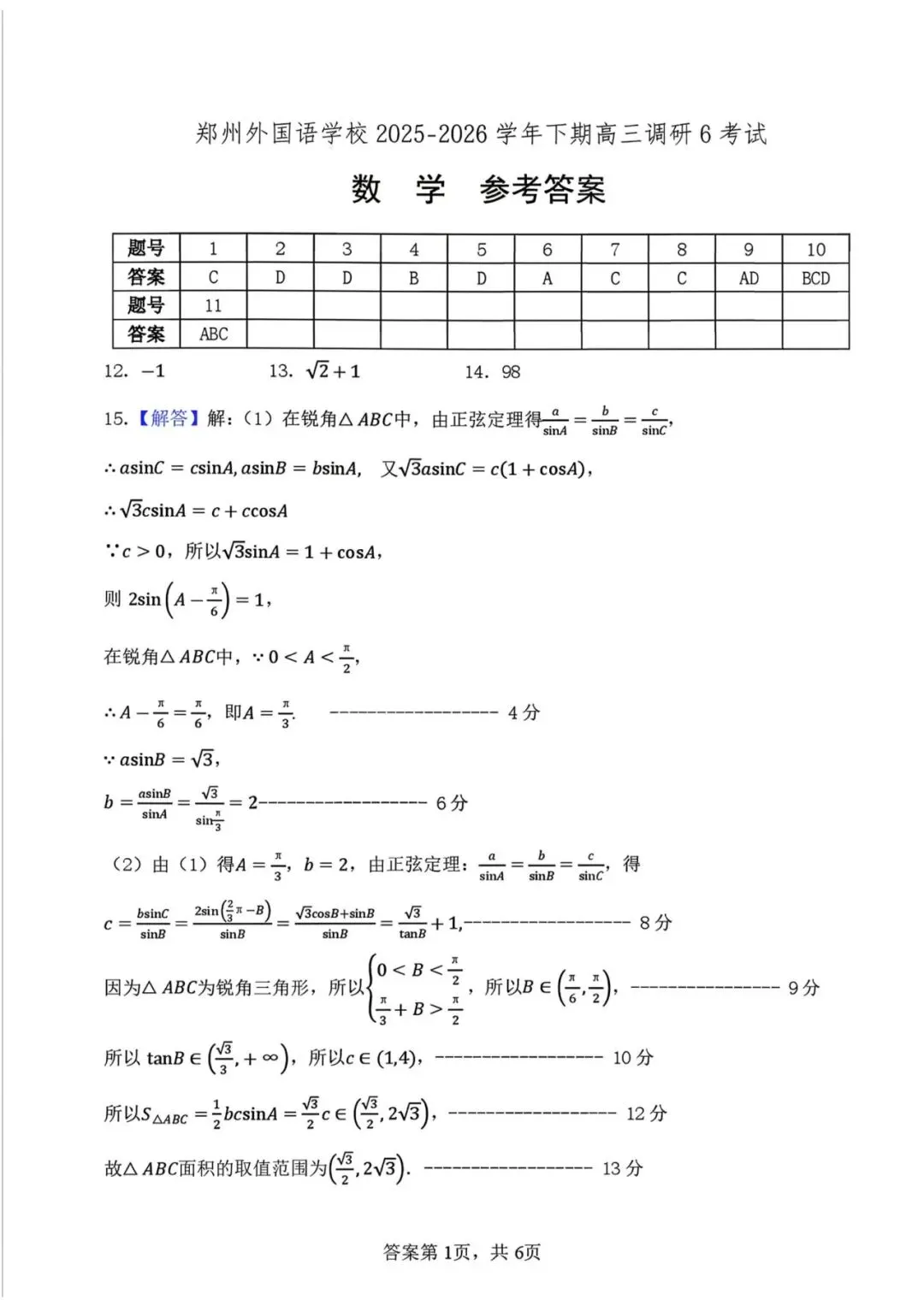 河南郑州市外国语学校2025-2026学年高三下学期3月阶段检测