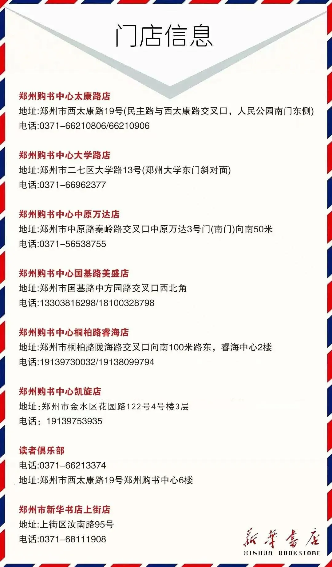 地址:中原路与秦岭路交叉口中原万达三号门向南50米新华书店